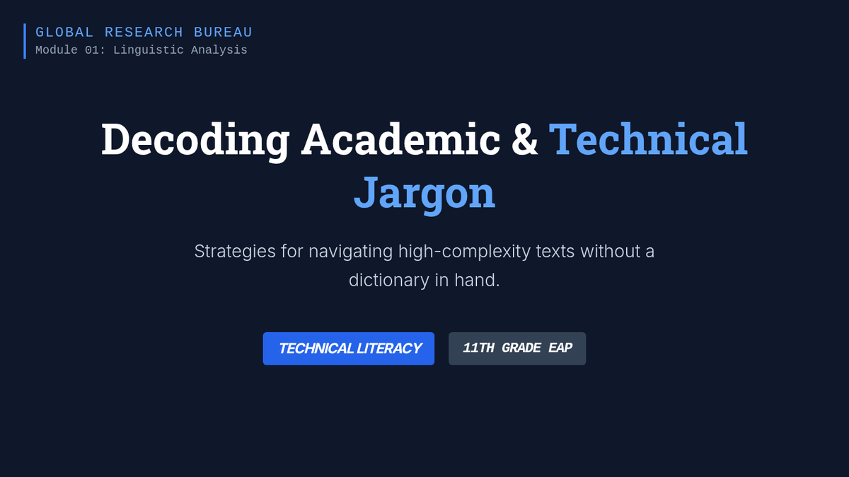 A comprehensive 11th-grade advanced reading sequence focused on technical literacy, data synthesis, and professional communication. Students simulate the role of research analysts to master complex academic texts and synthesize conflicting information.