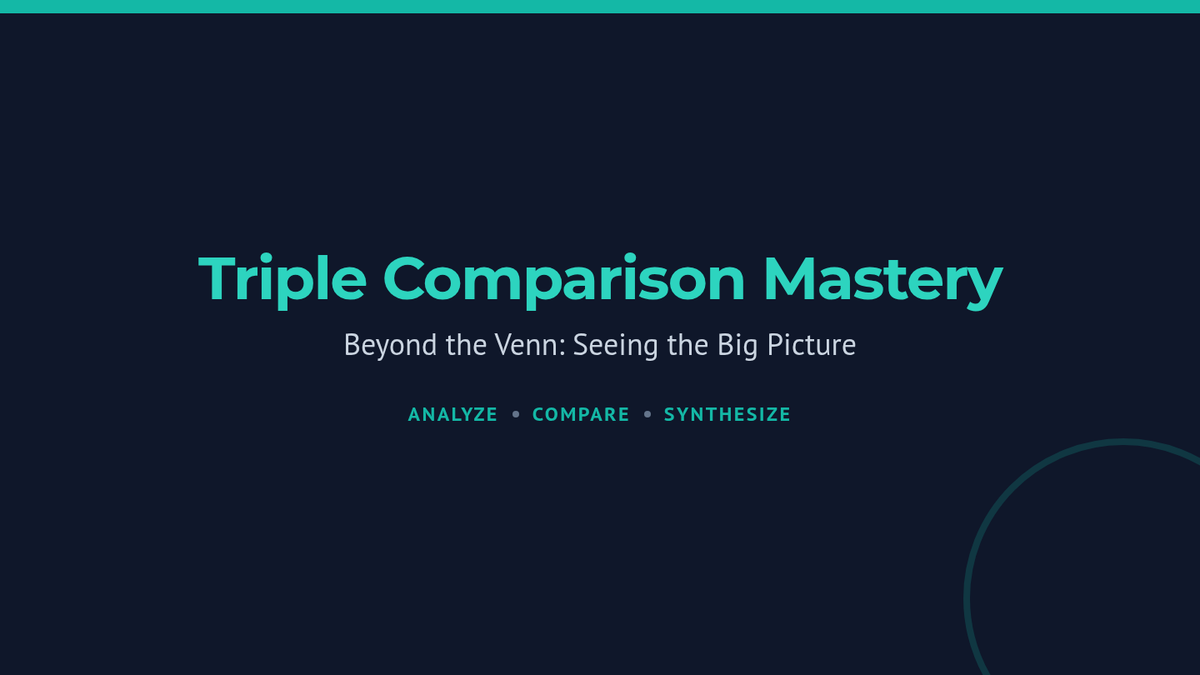 Compare And ContrastAnalytical techniques for identifying similarities and differences between two or more subjects. Develops critical thinking skills through the use of Venn diagrams and organizational frameworks.