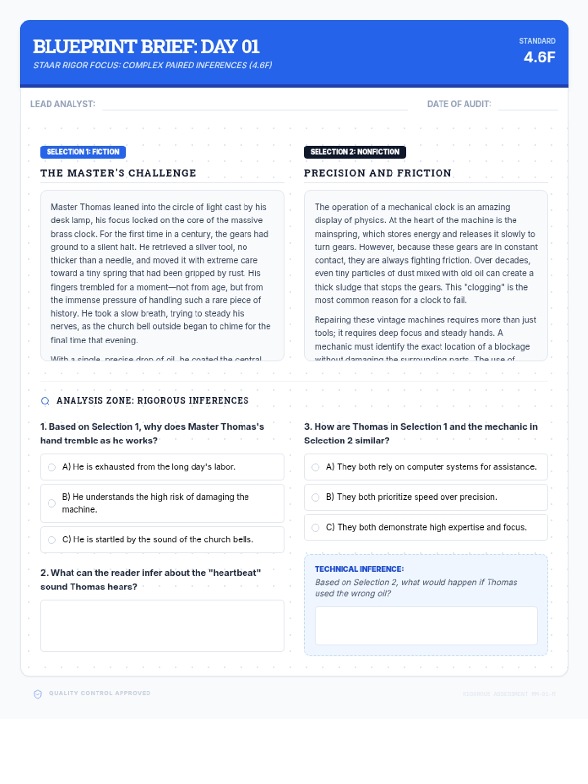 Critical analysis of text structure, authorial intent, and thematic development across fiction and nonfiction. Develops skills in inference, literary devices, and comparative analysis to deepen understanding of complex narratives and informational documents.