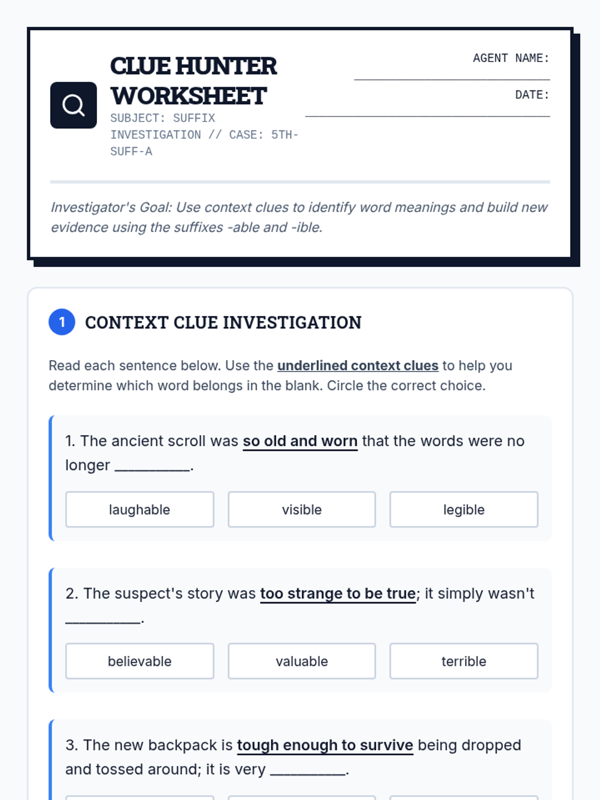 English Language ArtsPhonics & Reading FoundationsLetter IdentificationLearn Letters A-ZLowercase and Uppercase LettersConsonants and VowelsLetter-Sound AssociationsLetter-Sound Associations: LowercaseLetter-Sound Associations: UppercaseBeginning and Ending SoundsRhymingBlending And SegmentingShort VowelsShort Vowel SoundsConsonant BlendsConsonant DigraphsBlends, Digraphs, and TrigraphsDigraphs, Blends, and Silent LettersLong Vowel SoundsLong Vowel PatternsShort and Long VowelsShort and Long Vowel PatternsSilent EVowel SoundsVowel TeamsR-Controlled VowelsDiphthongs: Oi, Oy, Ou, OwVariant VowelsVariant, Diphthong, And R Vowel PatternsSoft G And CSight WordsIrregular WordsWord RecognitionSyllablesSyllable TypesTwo-Syllable WordsMultisyllabic WordsPhoneme ManipulationDecodable TextsVocabularyAction WordsQuestion WordsNouns and AdjectivesClassify WordsCompound WordsSynonyms and AntonymsHomophonesHomophones and HomonymsShades of MeaningContext CluesPrefixes and SuffixesGreek and Latin RootsAnalogiesIdioms and AdagesForeign Words and ExpressionsWord Choice and UsageReference SkillsReading ComprehensionRead-Along Literary TextsRead-Along Informational TextsReality vs. FictionStory ElementsCharacterSequenceMain IdeaCause And EffectCompare And ContrastReading StrategiesText StructureAuthor's PurposeAuthor's Purpose And ToneAuthor's PerspectivePoint Of ViewThemeInference And ThemeInference And AnalysisPoetry ElementsLiterary DevicesAnalyzing LiteratureAnalyzing Informational TextsComparing TextsAudience, Purpose, And ToneBusiness DocumentsNovel StudyNonfiction Book StudyGrammar & MechanicsSentencesNounsVerbsAdjectivesPronounsCapitalizationPunctuationContractionsConjunctionsPrepositionsArticlesAdjectives And AdverbsVerb TypesVerb TensePronouns And AntecedentsPronoun TypesSubject-Verb AgreementDirect And Indirect ObjectsSentences, Fragments, And Run-OnsPhrases And ClausesCommasSemicolons, Colons, And CommasDashes, Hyphens, And EllipsesSpellingAbbreviationsFormattingVerb Tense And MoodMisplaced ModifiersWritingDescriptive DetailsCreative WritingOpinion WritingTopic SentencesOrganizing WritingLinking WordsSentence VarietyIntroductions And ConclusionsPersuasive And Opinion WritingExpository WritingPersuasive StrategiesDeveloping And Supporting ArgumentsTopic Sentences And Thesis StatementsSummarizingResearch SkillsEditing And RevisingActive And Passive Voice=Writing Clearly And ConciselyDebate & Public SpeakingPublic Speaking BasicsPersuasive TechniquesClaims and EvidenceTypes of ArgumentsReasoning TypesLogical FallaciesTopic ResearchOrganizing EvidenceDebate Speech OrganizationAttacking and Defending ArgumentsClash and EngagementImpact CalculusQuestioning and Cross-ExaminationCritical ThinkingInformal LogicFormal LogicInductive Reasoning