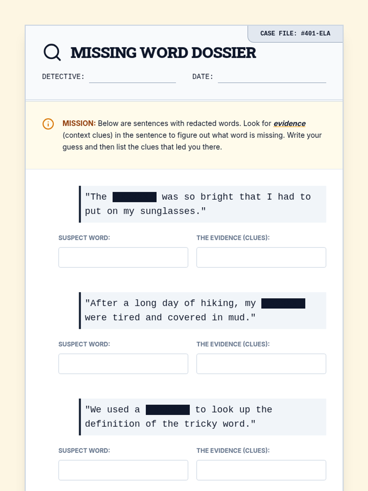 A specialized module for 5th-grade students to master the art of using context clues through observation, analysis, and creative writing.