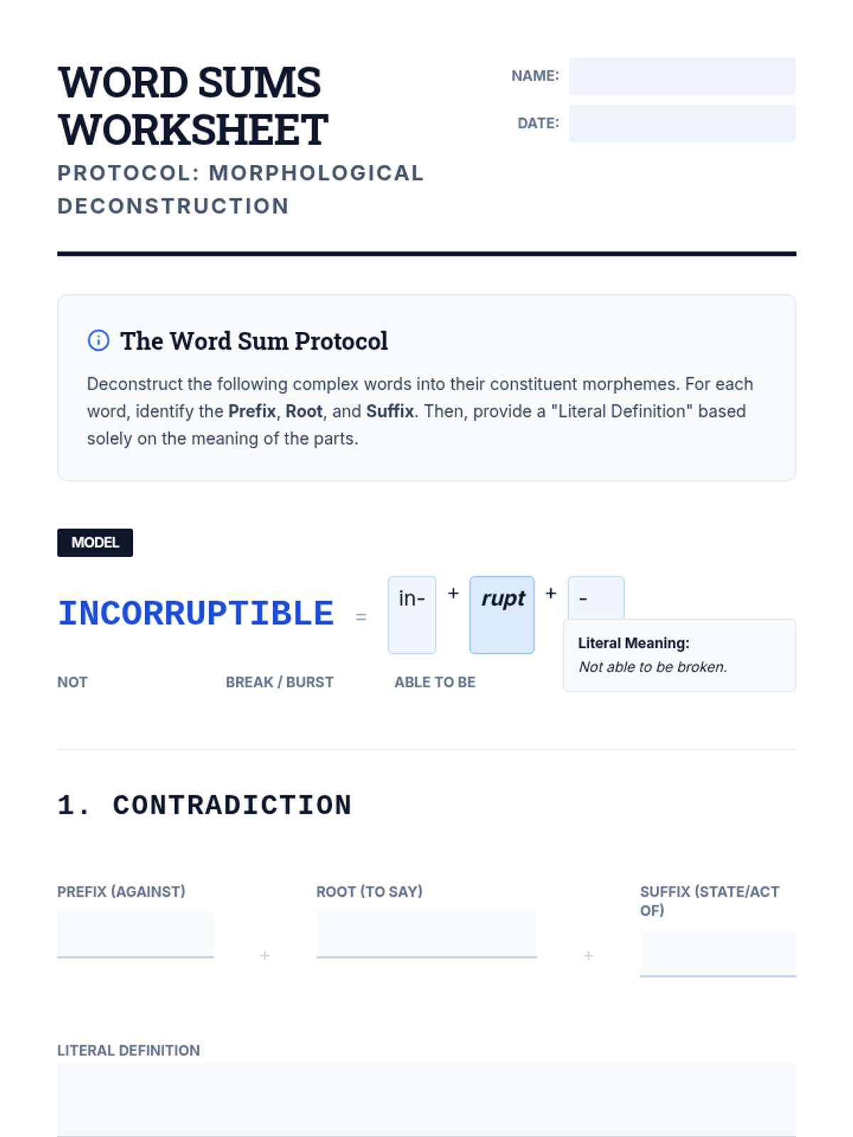 This high-school unit moves beyond rote memorization into the structural analysis of language through morphology and etymology, focusing on high-utility Greek and Latin roots found in rhetoric, science, and law.