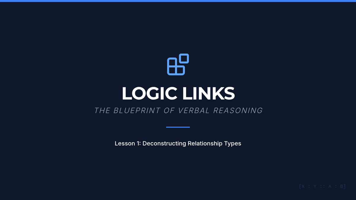 A comprehensive introduction to analogy mechanics for 9th graders, focusing on relationship types (synonyms, antonyms, degree, part-to-whole, function) and the 'bridge sentence' strategy for logical mapping.