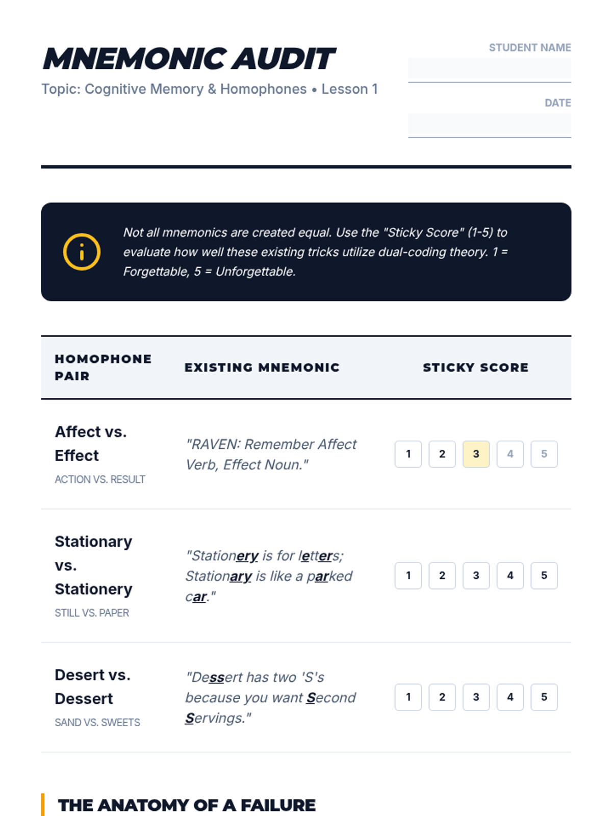 An 11th-grade ELA unit focusing on visual learning and mnemonic design to master complex homophones through dual-coding theory and graphic communication.