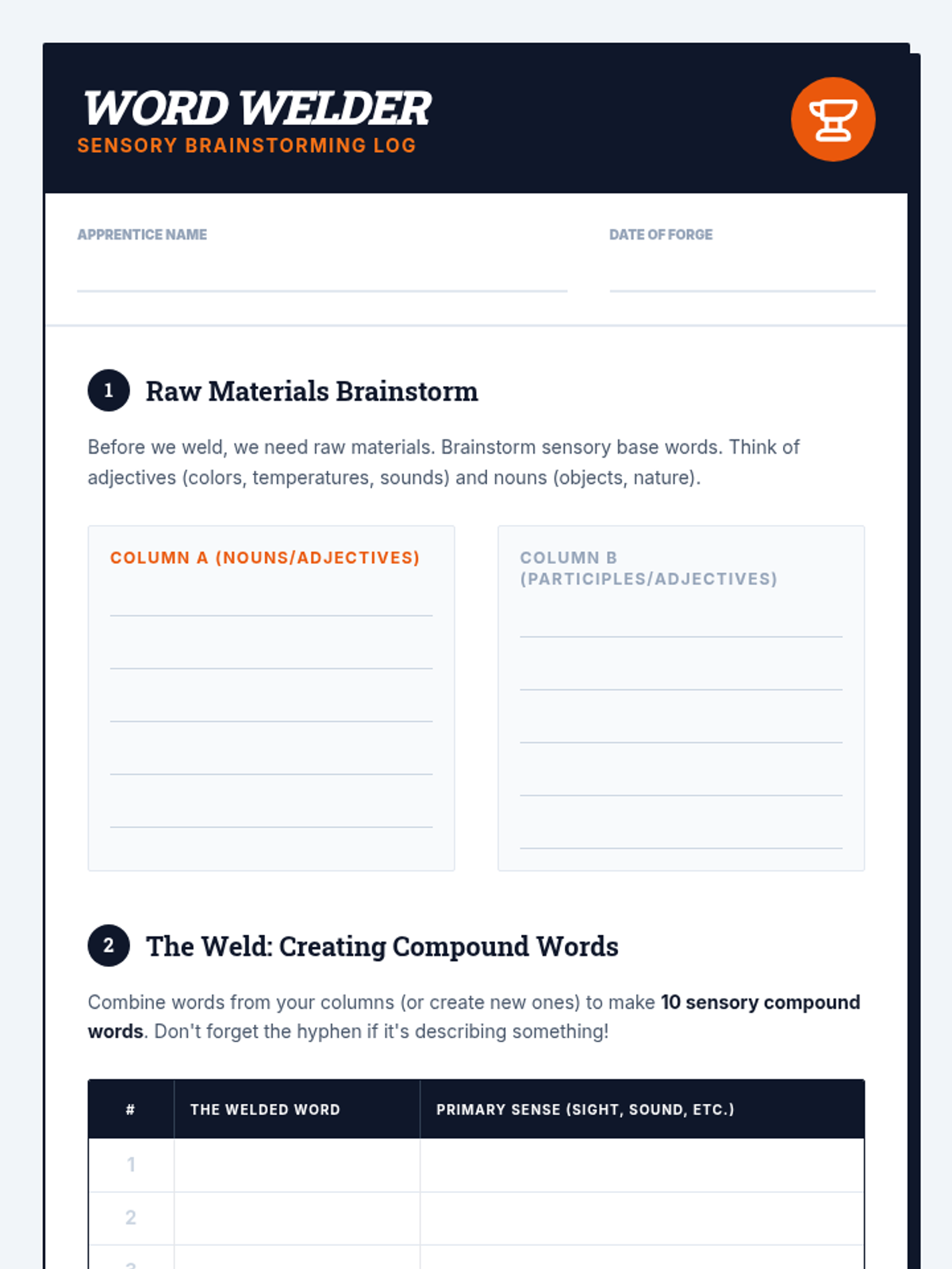 A 2nd-grade writing sequence where students learn to use compound words to make their descriptive writing more specific and engaging. Students move from identifying compound nouns in settings to using compound adjectives and crafting narratives.