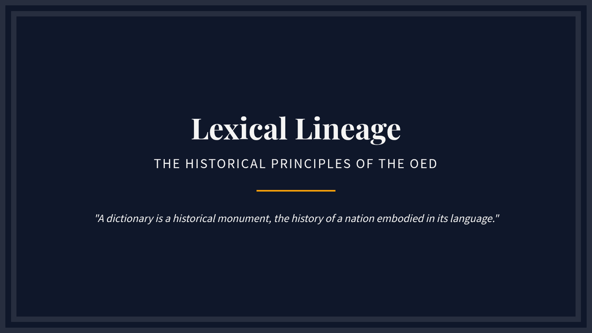 This sequence explores the nuances of language through lexicography, etymology, and specialized reference materials, moving from historical word analysis to intentional stylistic choices in writing.