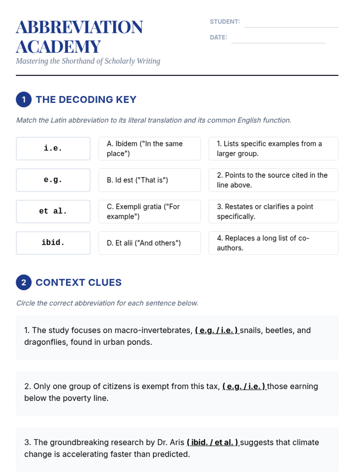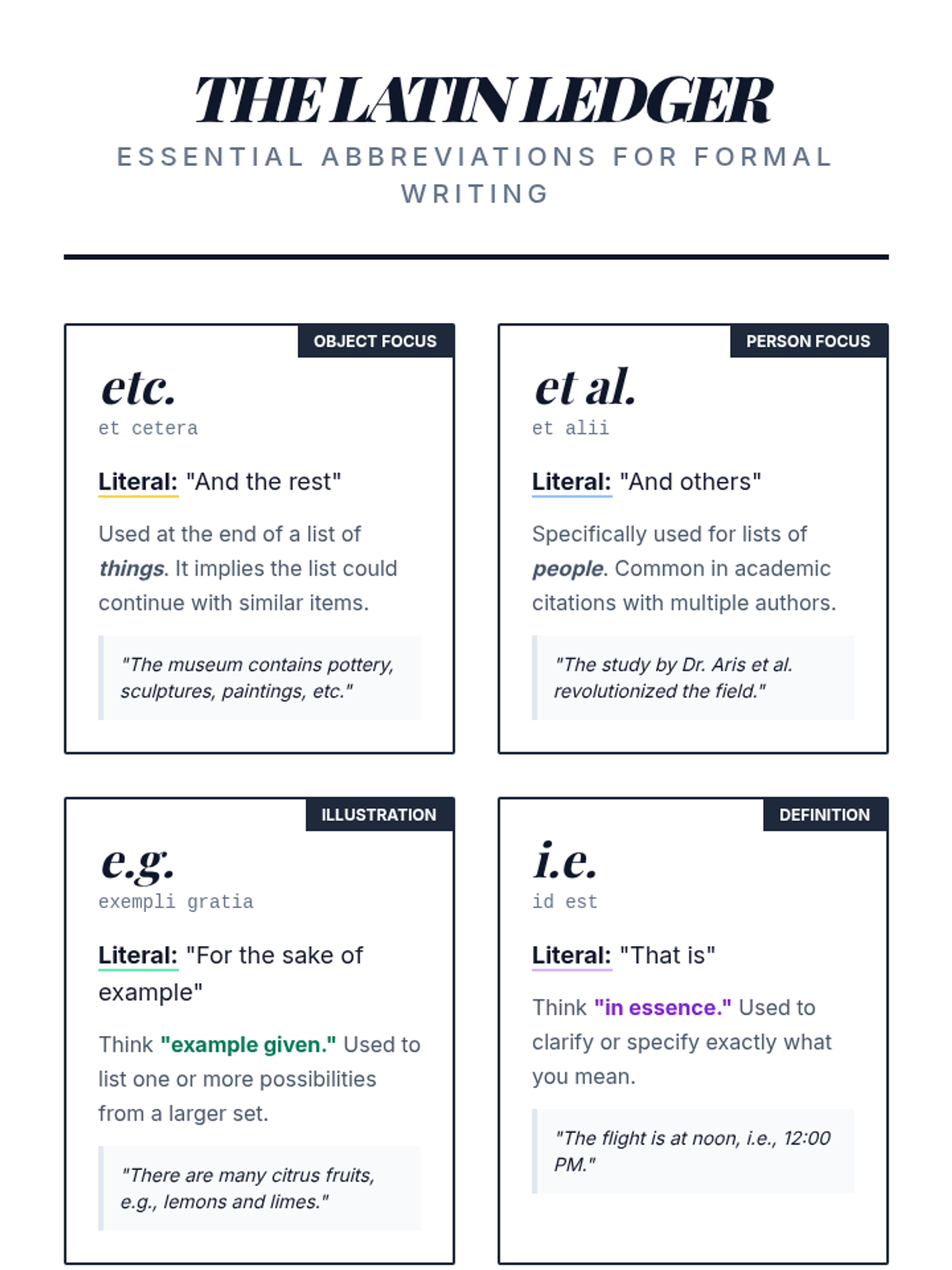A comprehensive unit for 9th-grade students on integrating Latin phrases into formal writing and argumentation. Students transition from understanding basic abbreviations to applying complex rhetorical and legal terms in a culminating persuasive editorial.