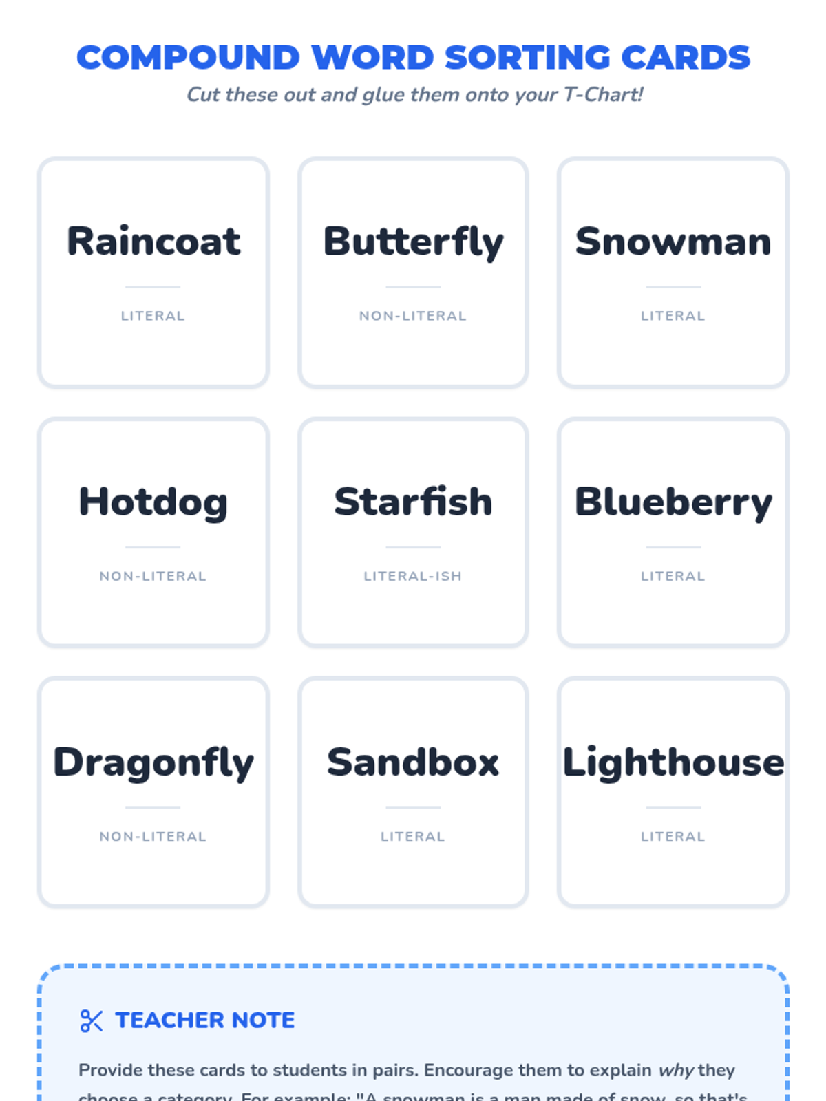 A comprehensive 2nd-grade English Language Arts sequence exploring the formation, identification, and deconstruction of compound words through visual aids, hands-on activities, and linguistic analysis.