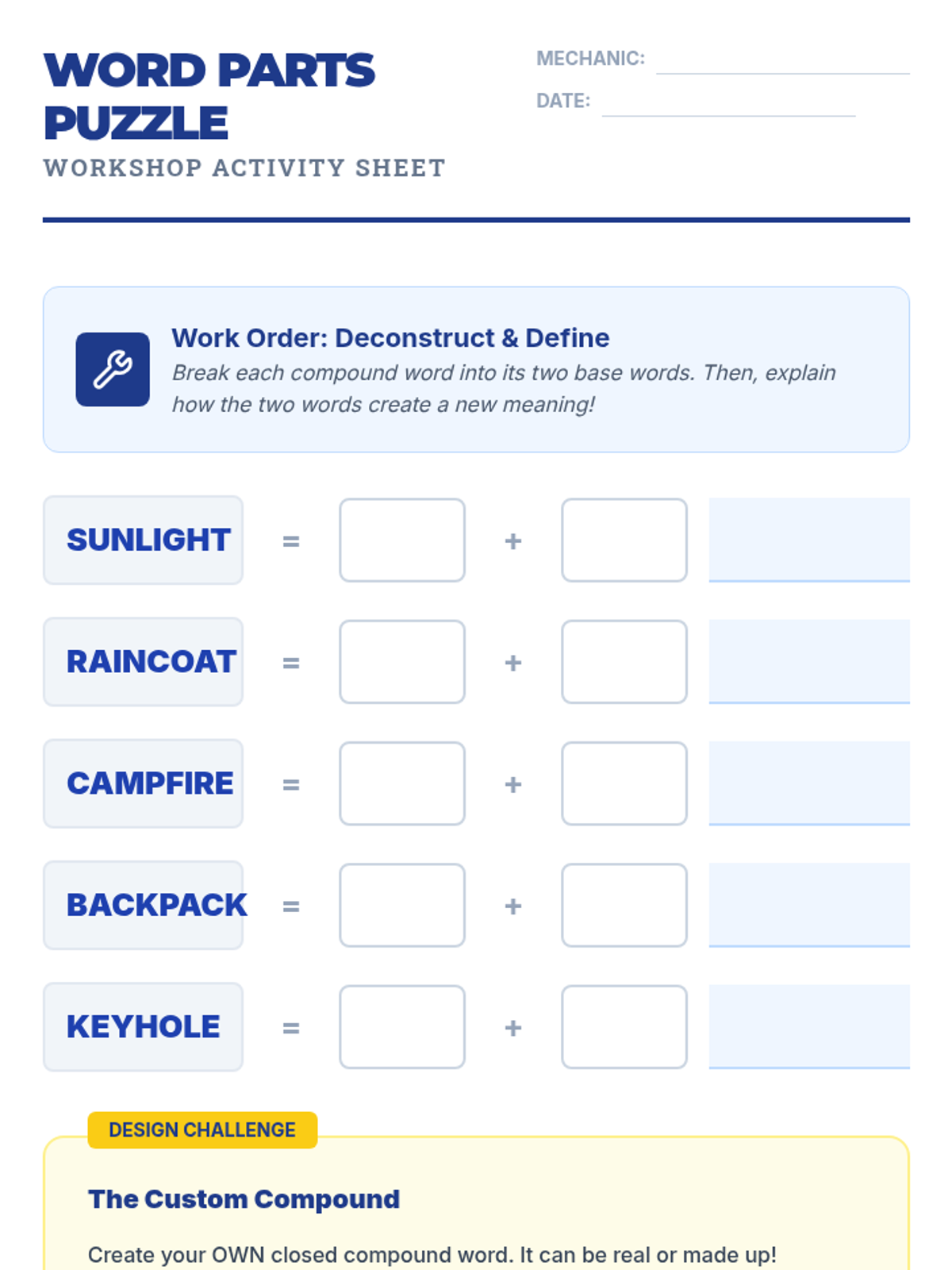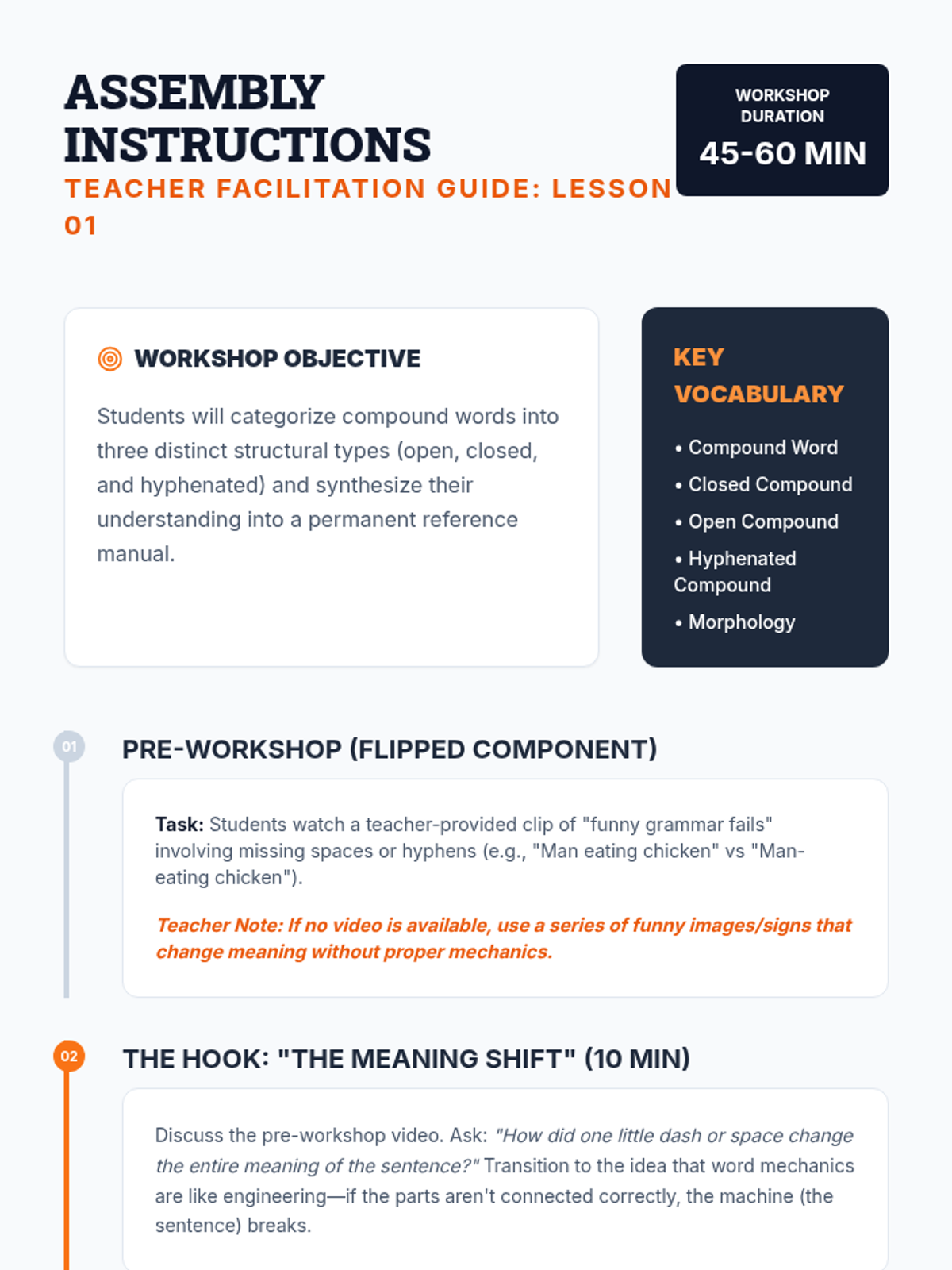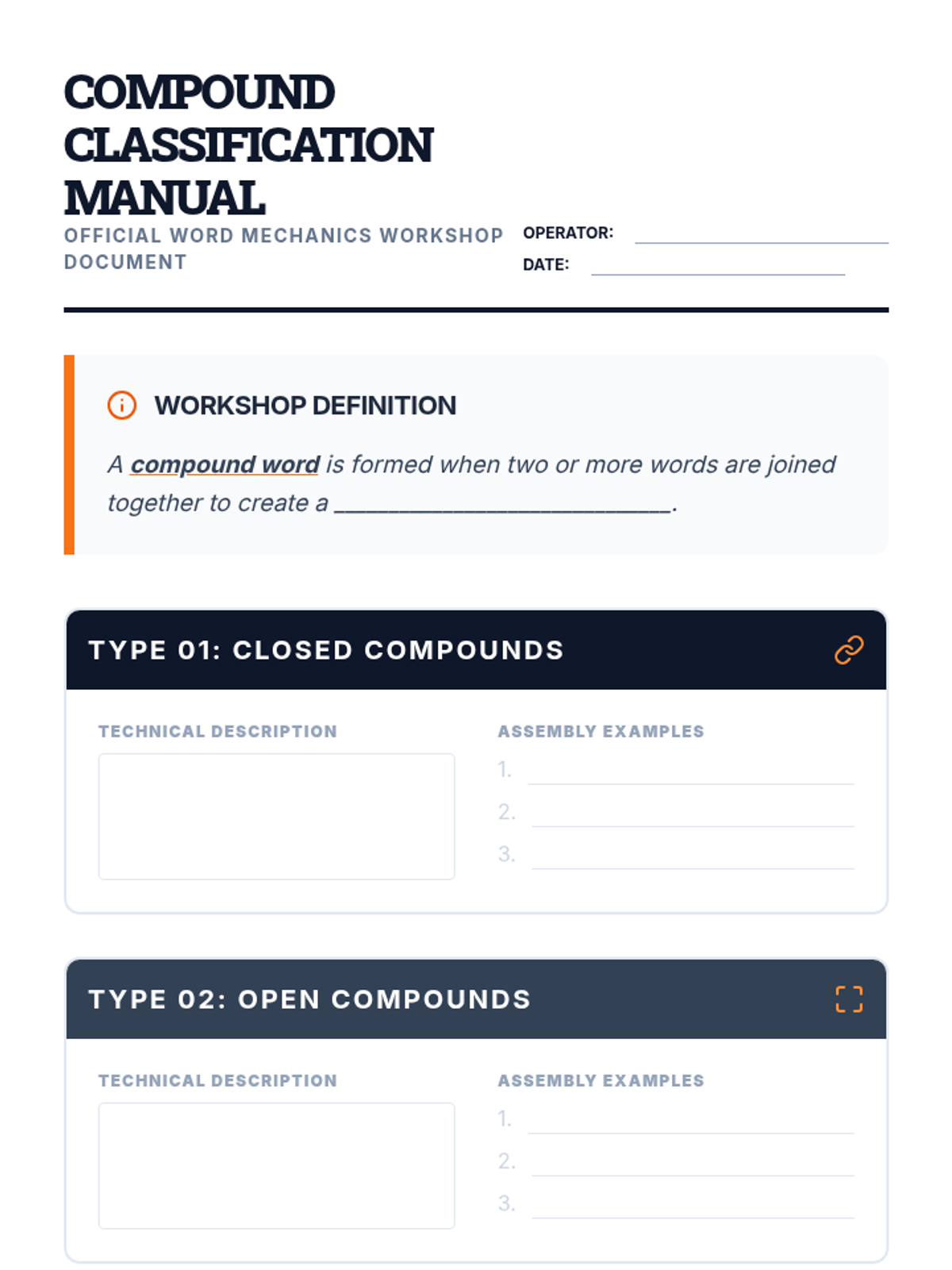 A high-energy, gamified unit where 4th graders act as 'Master Builders' to master the identification, categorization, and formation of open, closed, and hyphenated compound words.