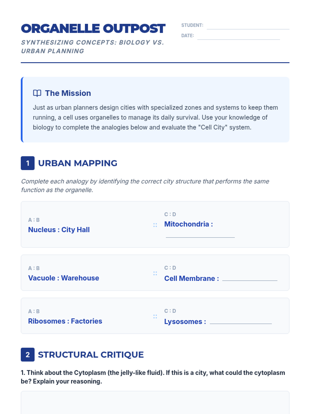 This sequence connects 6th grade vocabulary standards with science, social studies, and math by using analogies as cognitive tools. Students analyze complex systems and historical events through structural comparisons, culminating in an original analogy-based concept map project.