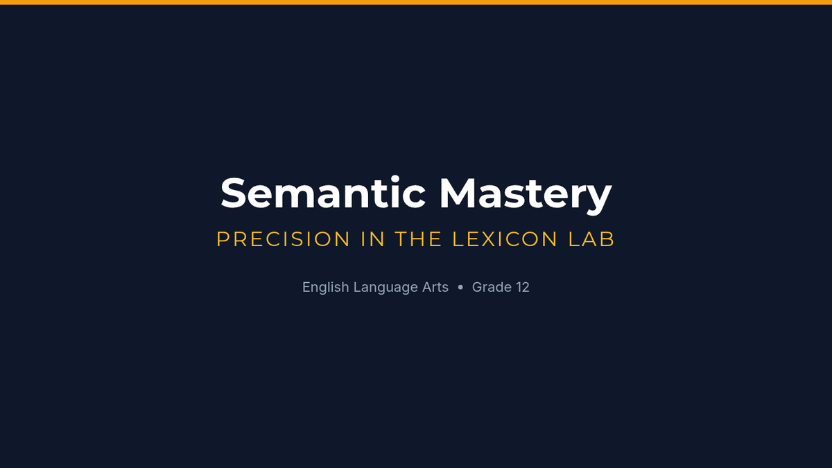 A high-level vocabulary sequence for 12th graders focusing on the semantic precision and logical reasoning required for complex analogies. Students progress from concrete semantic fields to abstract etymological decoding and timed mastery, culminating in a student-led design tournament.