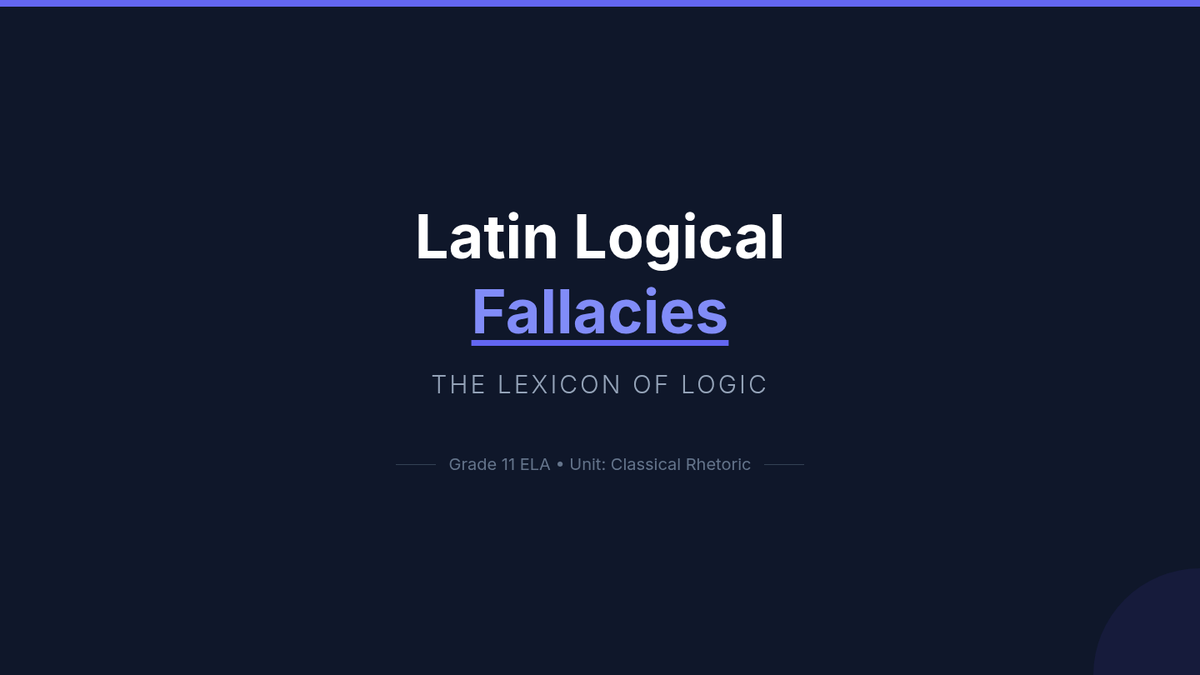 This high school ELA sequence explores Latin terminology in rhetoric, law, and academia. Students move from identifying logical fallacies to applying legal concepts and scholarly abbreviations, culminating in a persuasive project that leverages classical authority for modern argumentation.