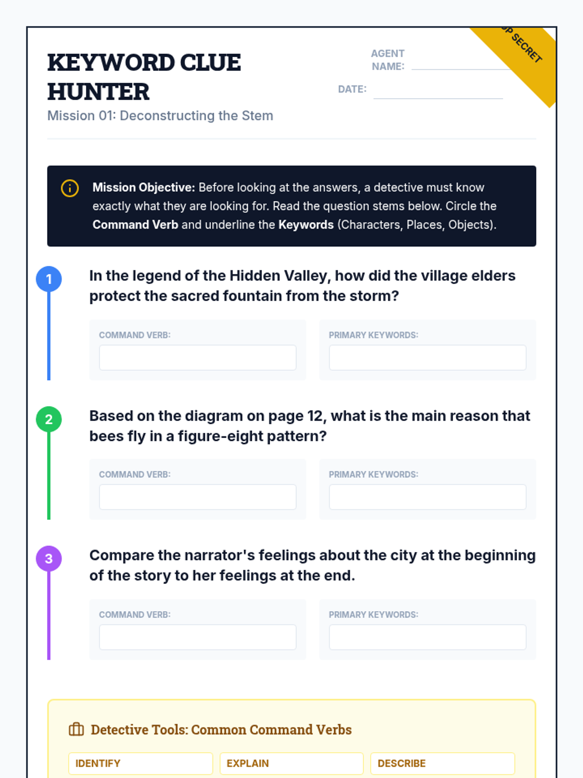 A comprehensive sequence for 3rd grade ESL students to master skimming and scanning techniques for academic success. Through a detective-themed curriculum, students learn to identify text features, isolate keywords in questions, and rapidly locate specific data to improve test-taking efficiency.
