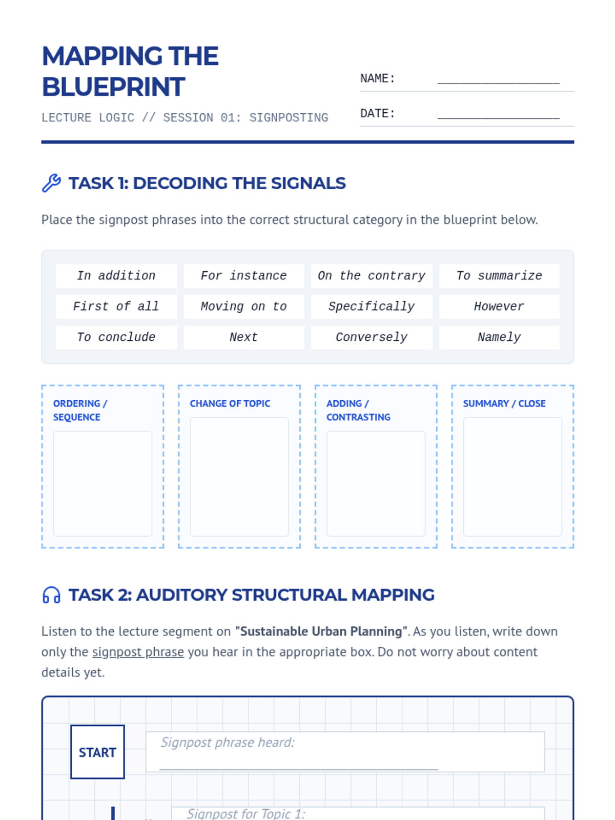This sequence equips intermediate ESL students with the linguistic and cognitive tools needed to navigate university lectures. It covers discourse markers, hierarchy of information, identifying tangents, note-taking systems, and synthesizing long-form academic speech.