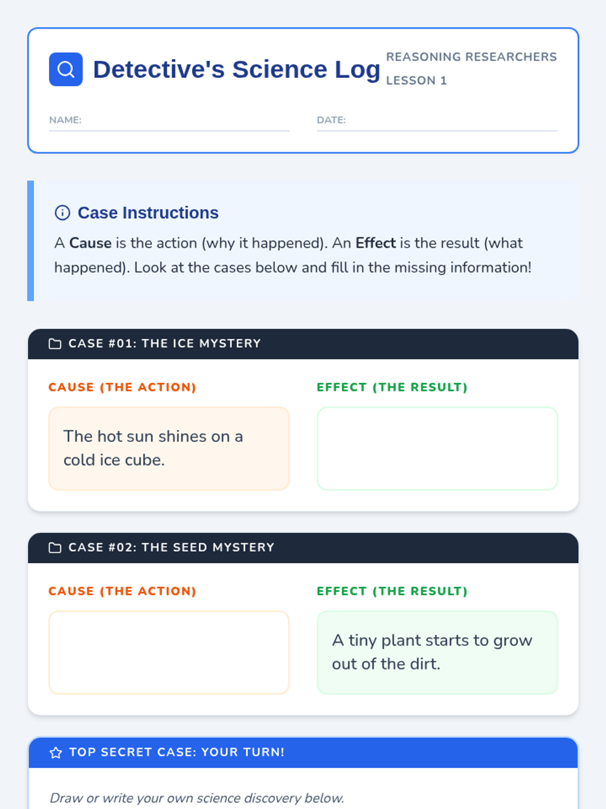 This inquiry-based sequence focuses on the specific language structures required to describe scientific phenomena, specifically cause-and-effect relationships and hypothesis generation for 3rd-grade ESL students. Students progress from sensory observation and vocabulary building to using complex sentence frames and drafting full scientific explanations.