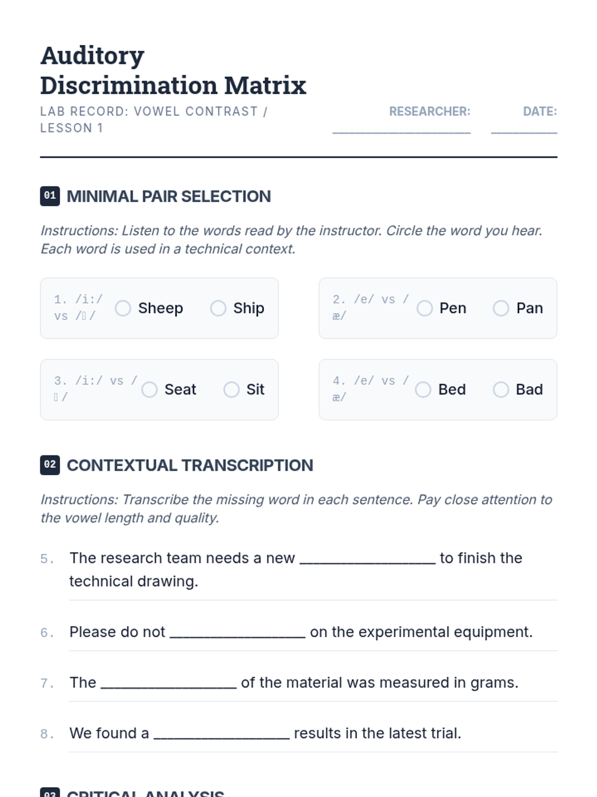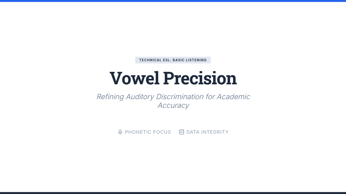 A technical ESL sequence for graduate students focusing on phonemic awareness and precise quantitative data capture. The course bridges the gap between basic listening skills and the accuracy required for academic research and professional communication.