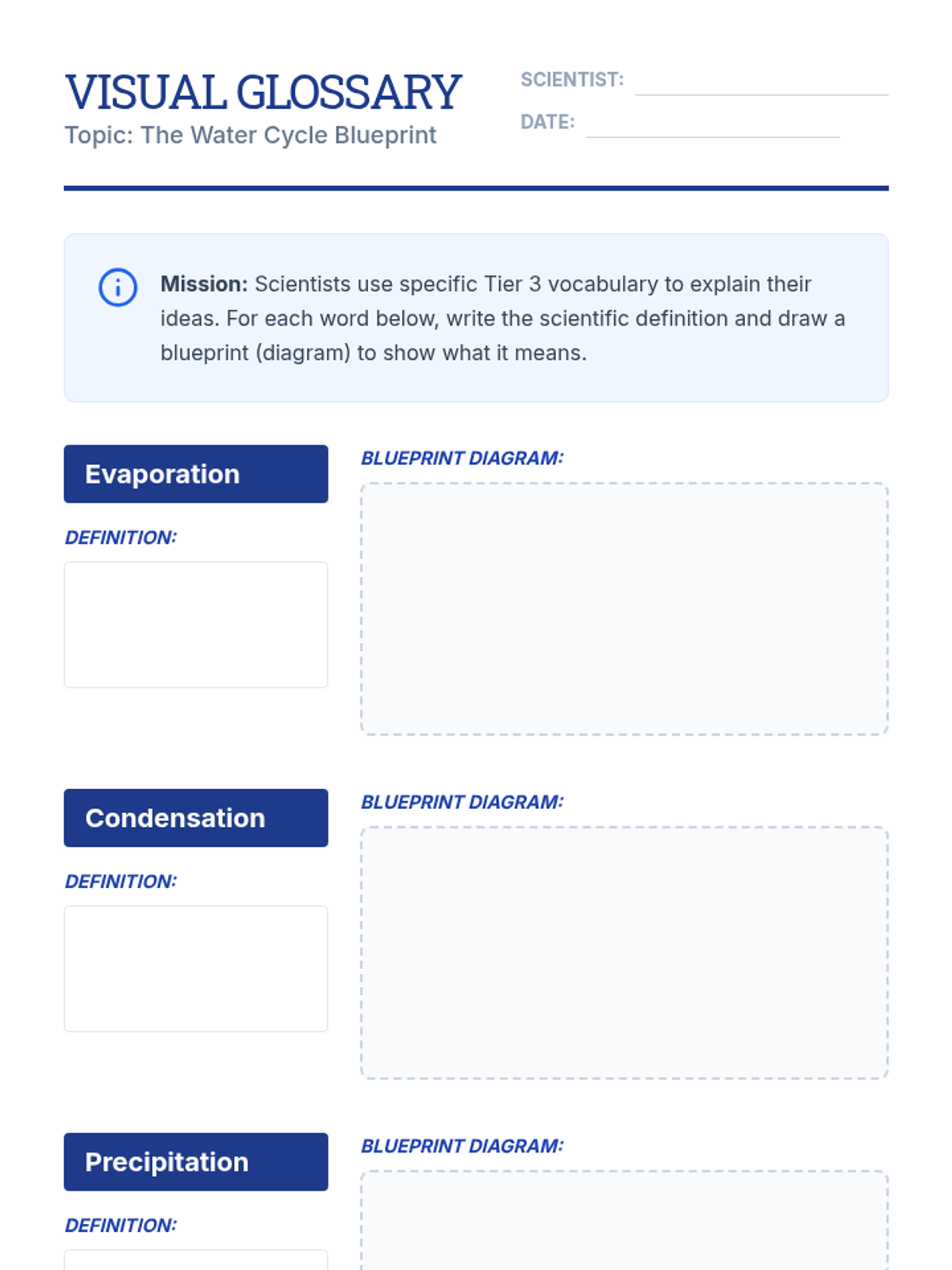 This sequence helps 4th Grade ESL students master the academic language needed to describe scientific processes and cause-effect relationships. Students move from building a technical vocabulary to using temporal transitions, causal connectors, and conditional 'If... then...' structures to explain natural phenomena.