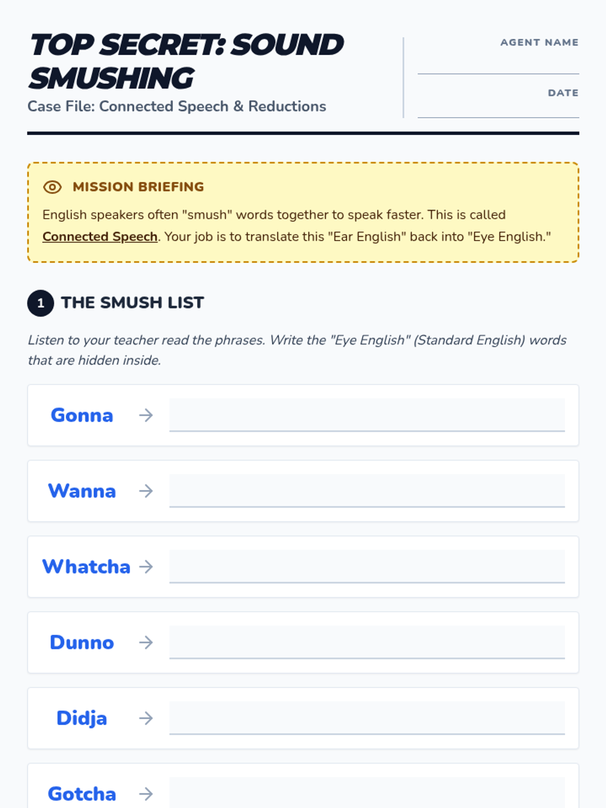 A comprehensive ESL listening sequence for 4th graders focusing on natural speech patterns, emotional tone, idioms, and social registers. Students act as 'Ear Detectives' to decode the hidden meanings in how English is actually spoken vs. how it is written.