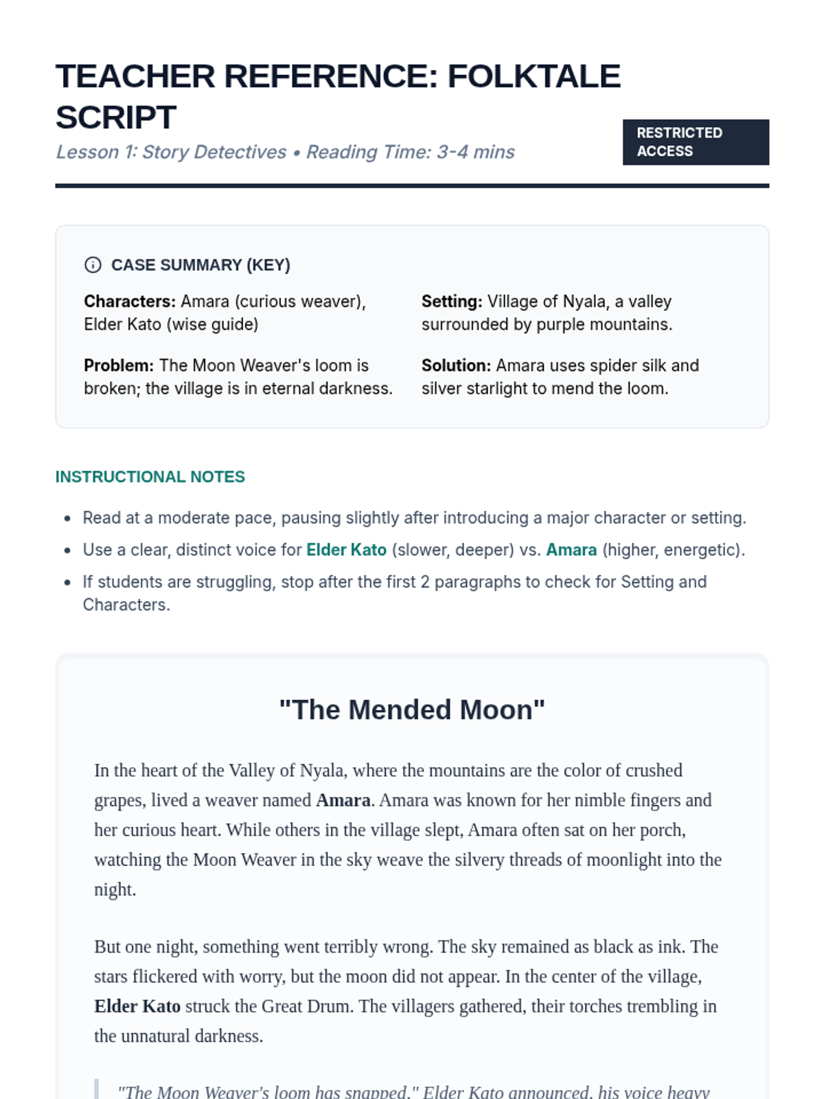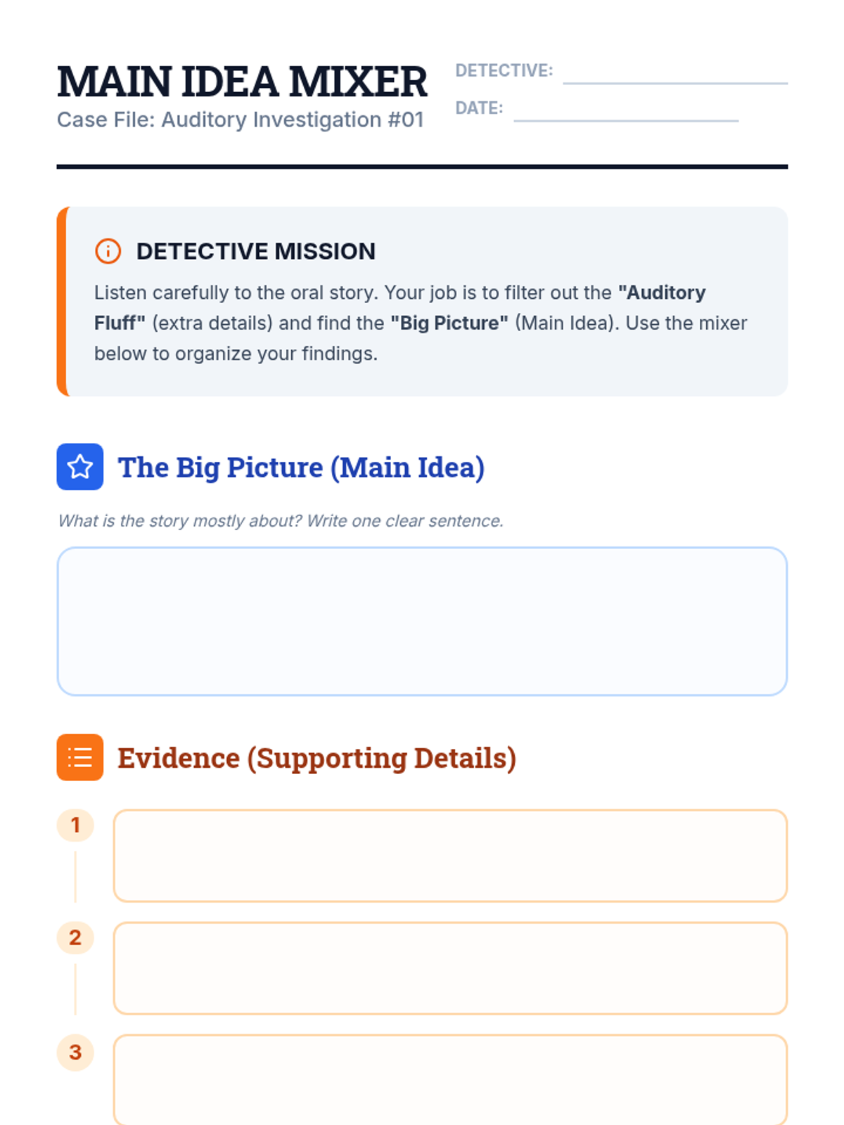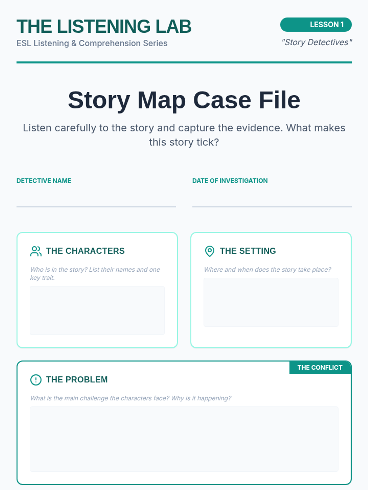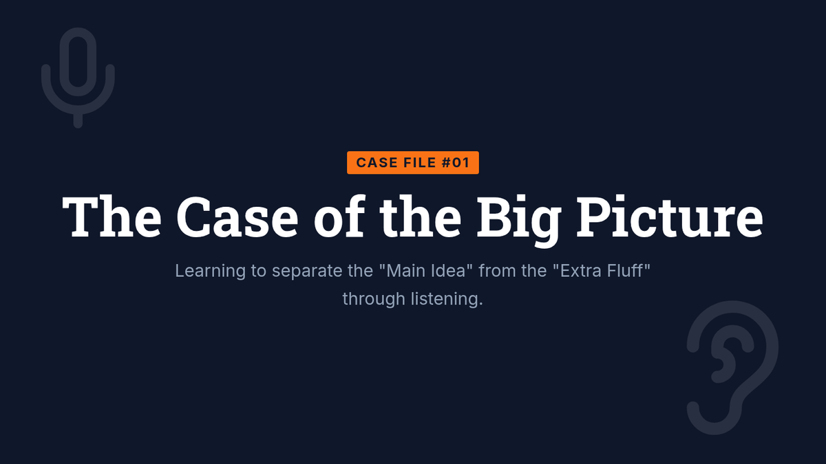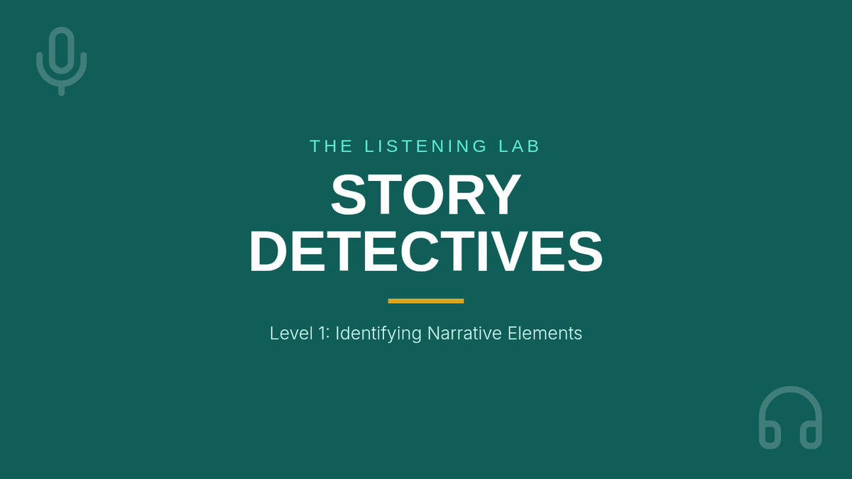 A 4th-grade ESL listening sequence that transforms students into 'Sound Detectives' to master narrative elements. Students learn to filter 'auditory fluff' for main ideas, analyze character traits through vocal cues, track plot sequences using signal words, and predict endings using foreshadowing.