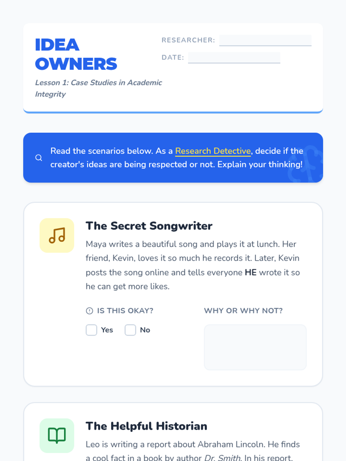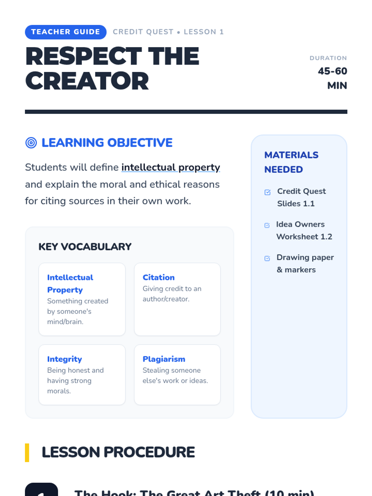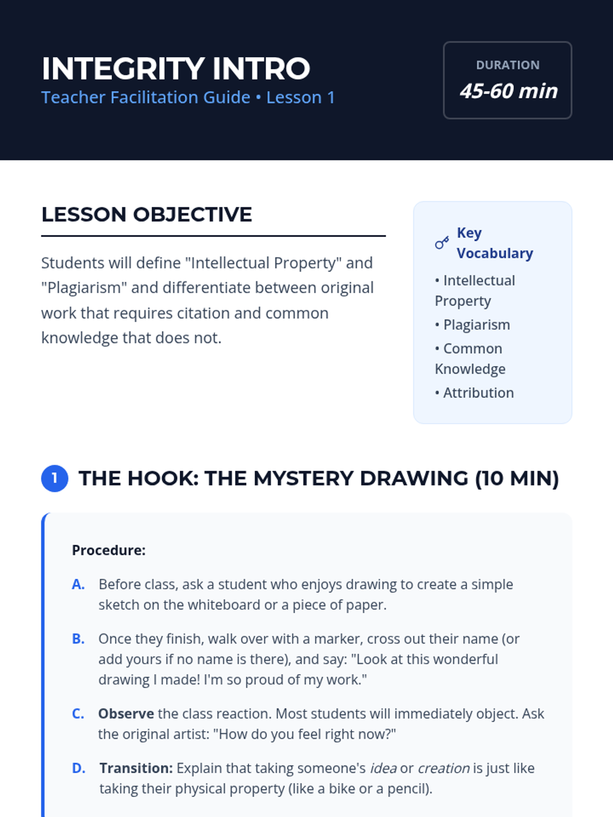 A comprehensive 4th-grade ESL project-based sequence on academic integrity and citation standards. Students transition from understanding the ethics of intellectual property to mastering the technical skills of citing books and websites, culminating in a mini-research project.