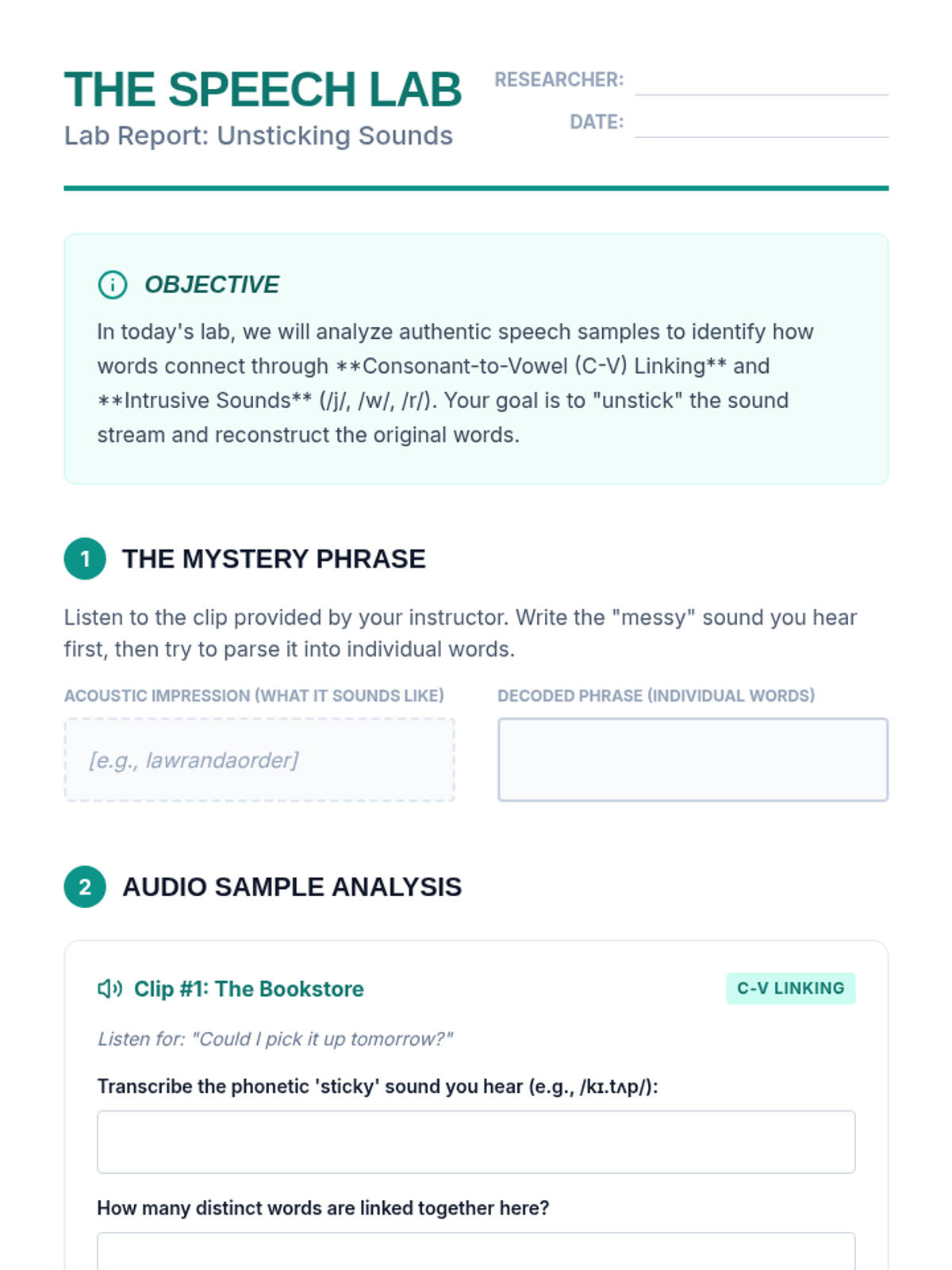 This sequence targets the mechanical difficulties of understanding natural, fast-paced English. Students explore phonological rules like linking, elision, and assimilation to decode authentic, fluid speech patterns found in campus social life.