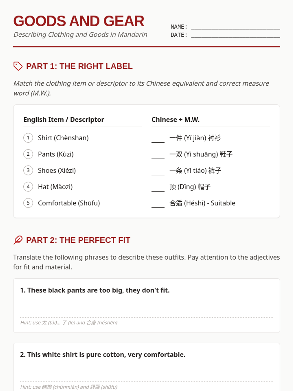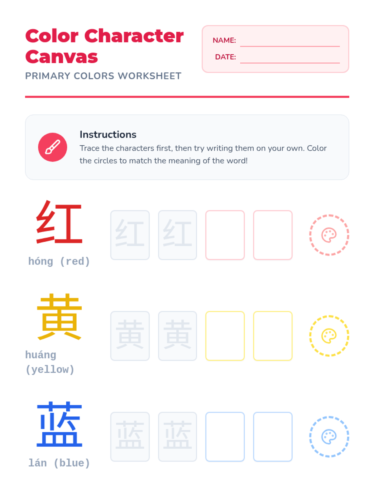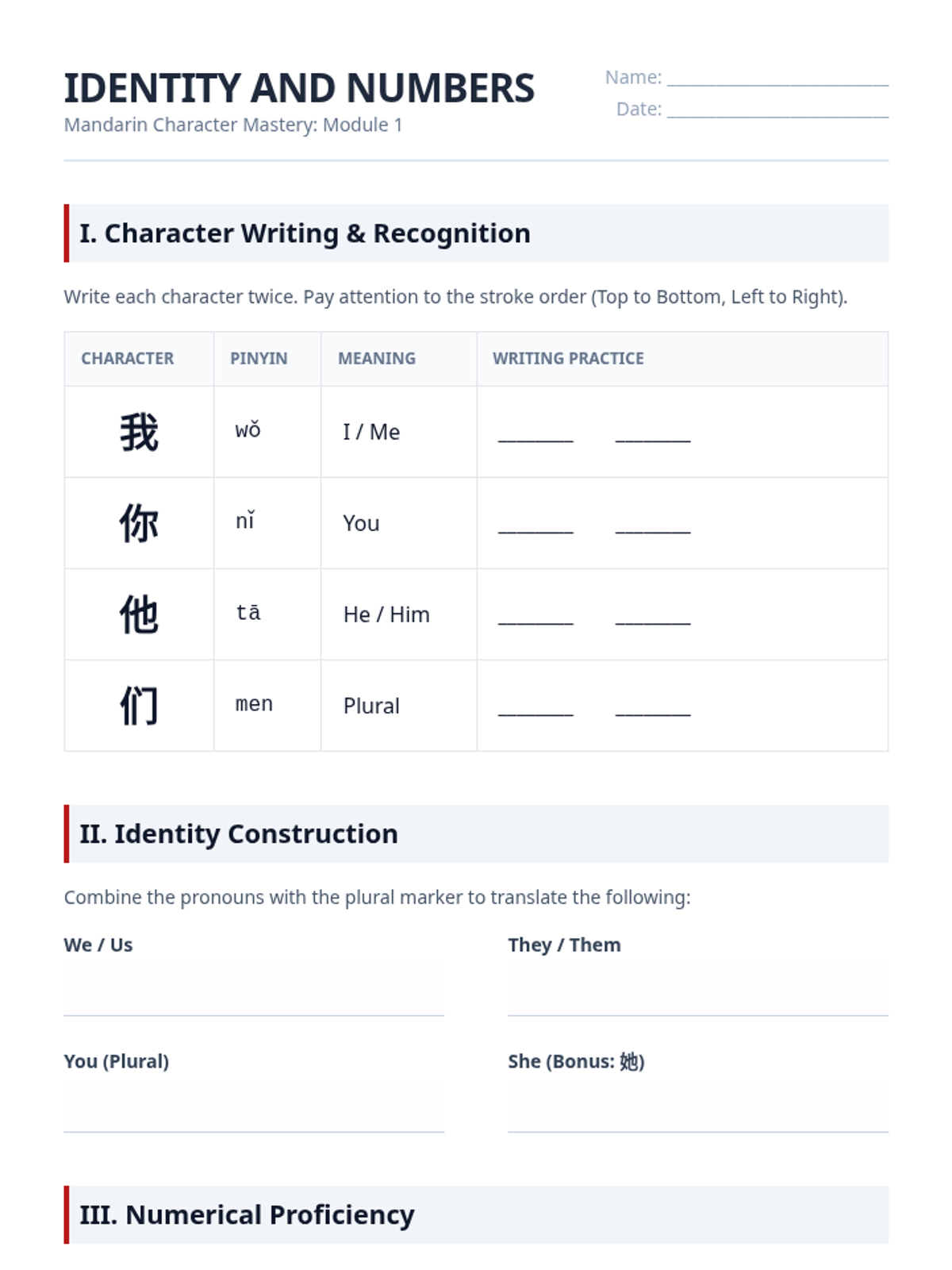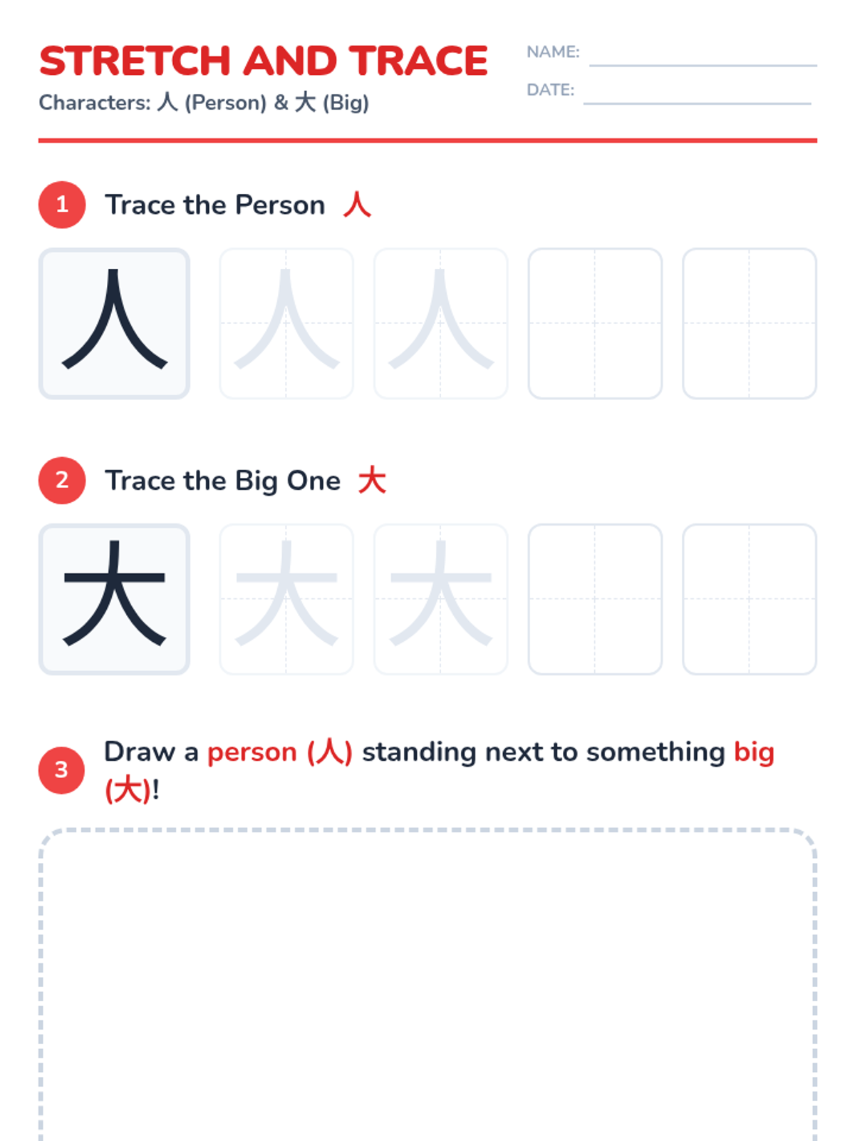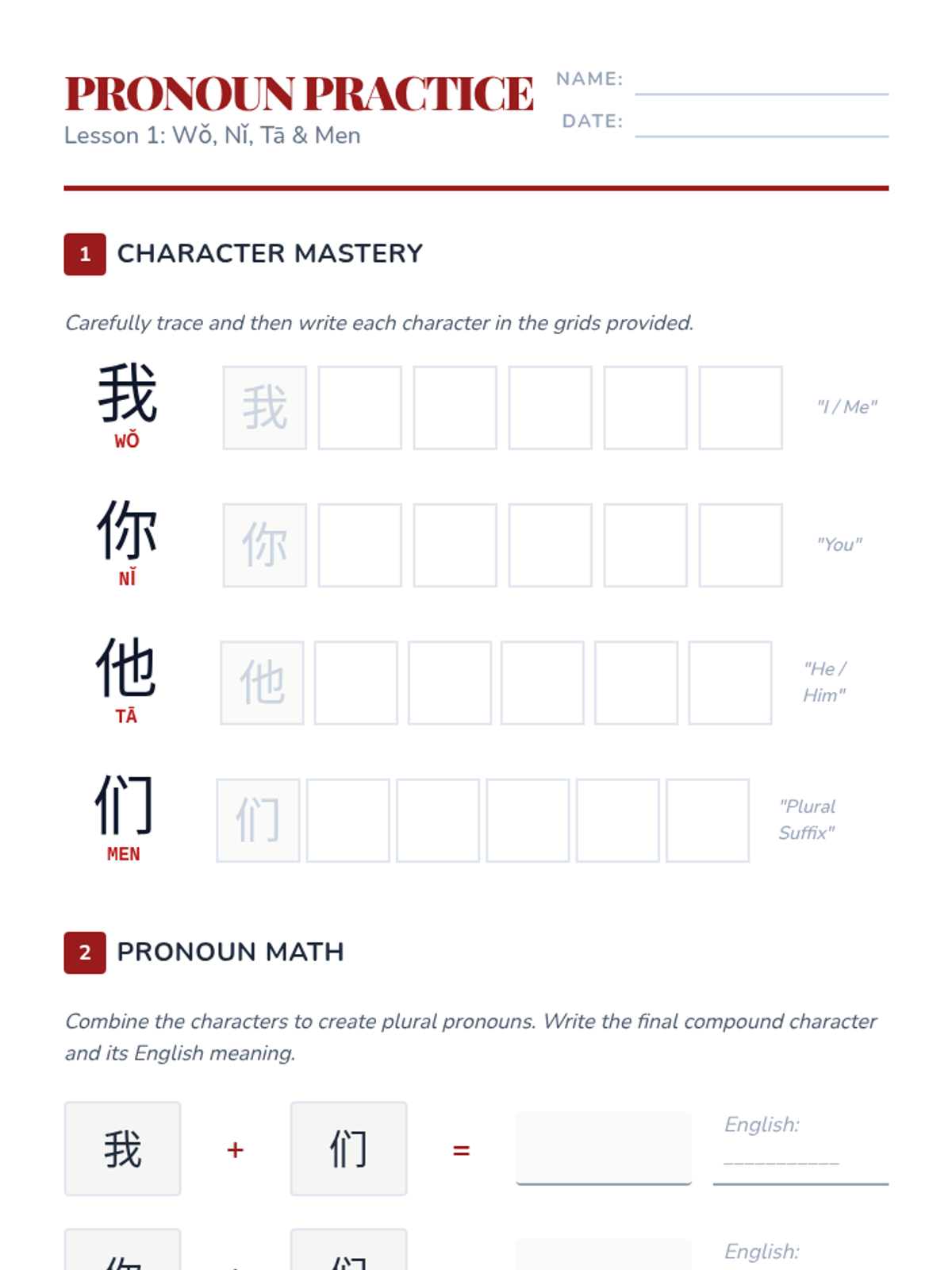 This workshop-style sequence focuses on the mechanics and aesthetics of writing intermediate Mandarin characters. Students refine their handwriting by mastering stroke order for complex characters and exploring structural balance using Tian Zi Ge grids, ultimately creating a calligraphic portfolio.