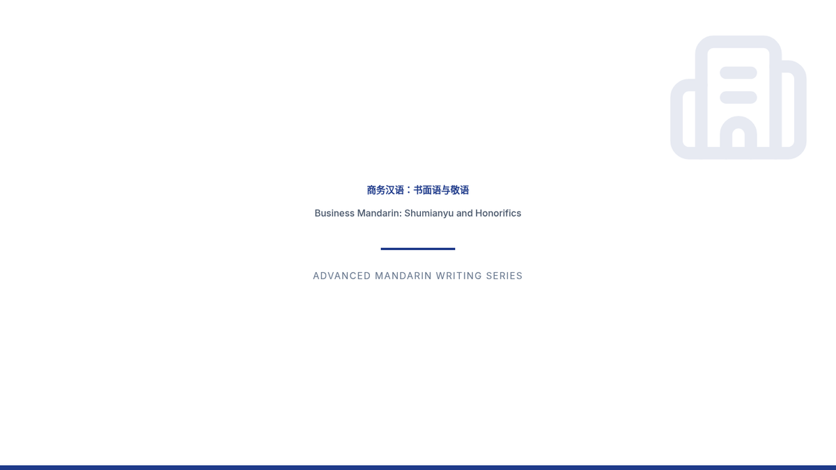 A comprehensive series for graduate students to master formal Mandarin communication within Chinese corporate environments. This sequence covers hierarchical protocol, negotiation tactics, the cultural nuances of 'face', formal written registers, and high-stakes meeting facilitation.