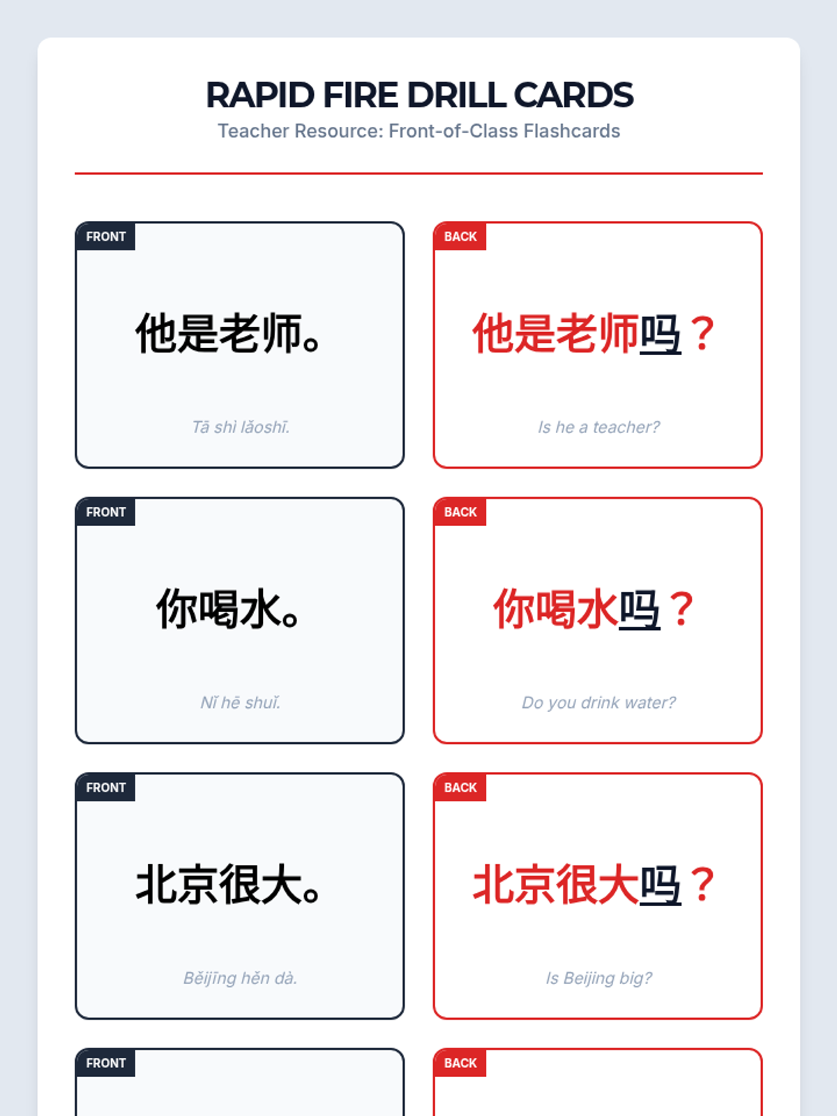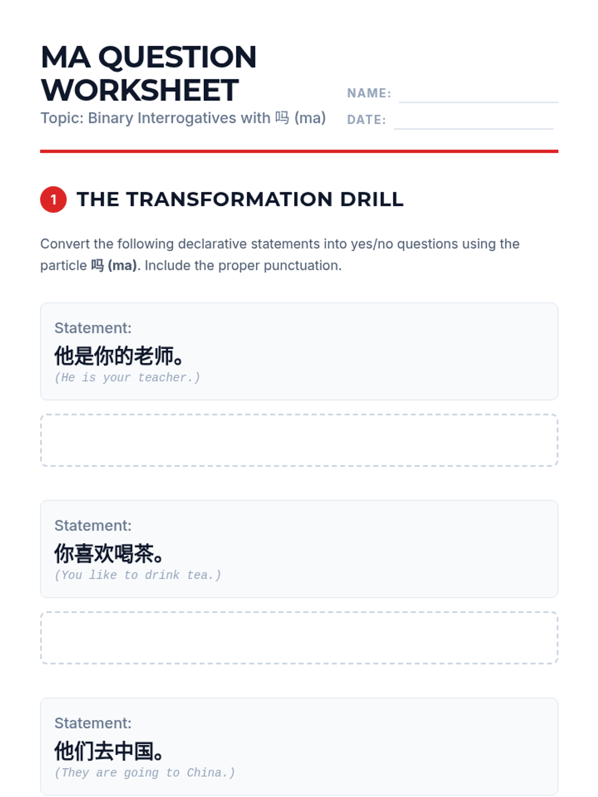 This sequence for 12th Grade Mandarin Chinese students focuses on the mechanics of asking questions and expressing negation. Students progress from simple yes/no questions to complex informational inquiries, while mastering the nuanced distinctions between 'bu' and 'mei' negation, culminating in a simulated investigative interview.