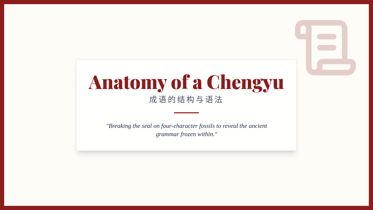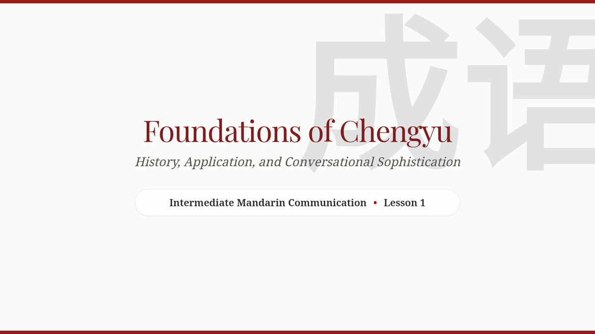 This advanced Mandarin course explores the linguistic structure, historical origins, and modern rhetorical applications of Chengyu (four-character idioms). Students transition from rote memorization to sophisticated deployment of classical allusions in academic and professional contexts.