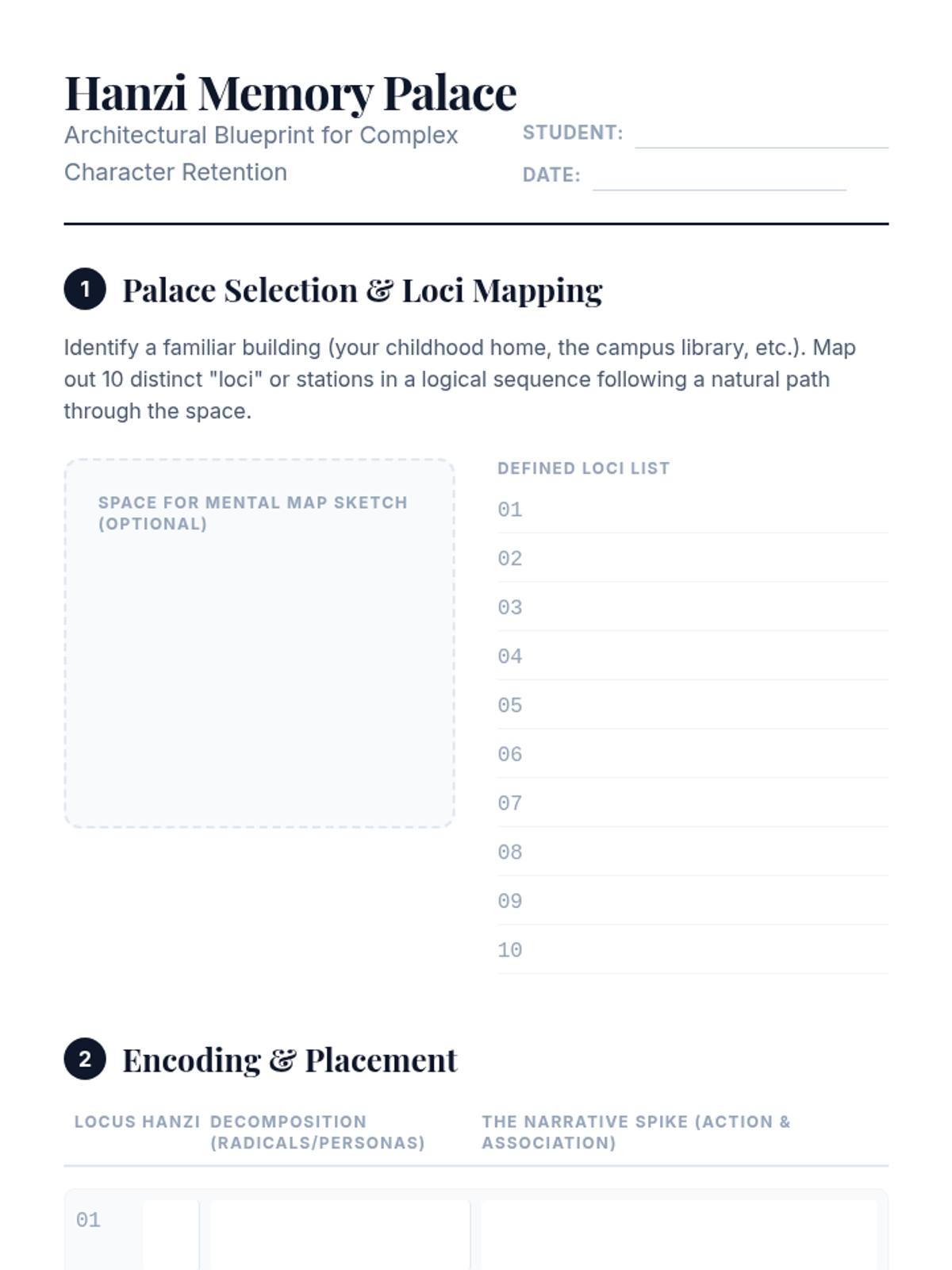 A graduate-level sequence focused on cognitive science and mnemonic strategies for retaining complex, low-frequency Mandarin characters. Students move beyond rote memorization to explore the method of loci, narrative encoding, and kinesthetic reinforcement.