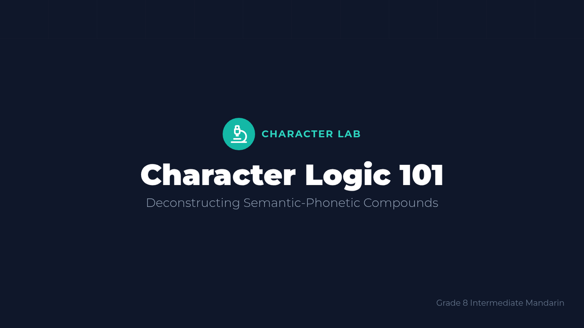 An intermediate Mandarin Chinese sequence for 8th graders focusing on the semantic-phonetic structure of characters. Students move from basic component identification to analyzing complex character families and predicting the pronunciation of unknown characters.