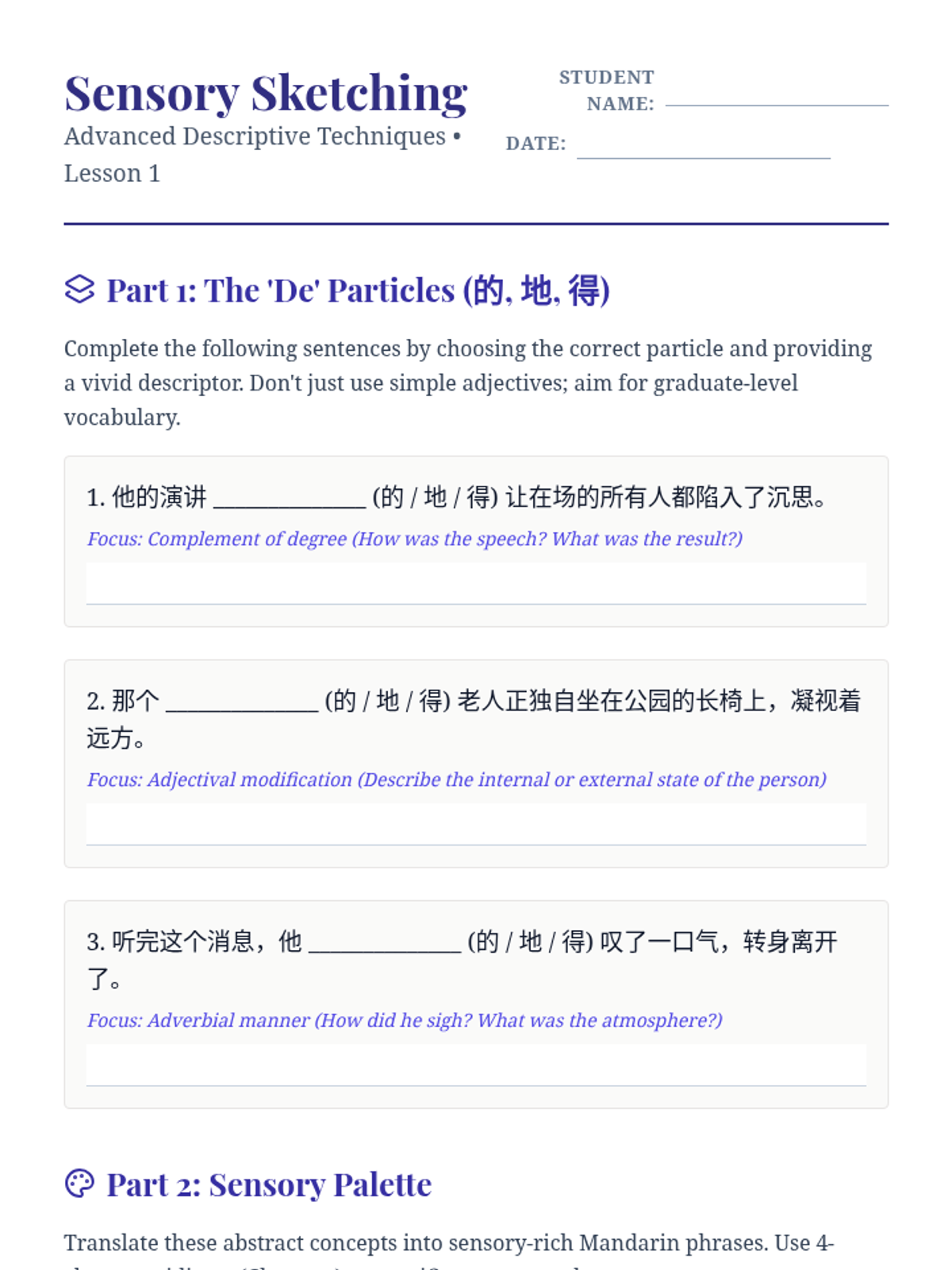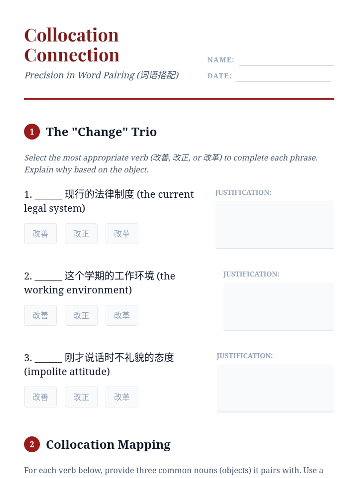 This sequence guides advanced Mandarin learners through the subtle art of synonym discrimination. Students explore collocations, emotional connotations, semantic intensity, and register shifts to achieve native-like precision in their writing and speech.