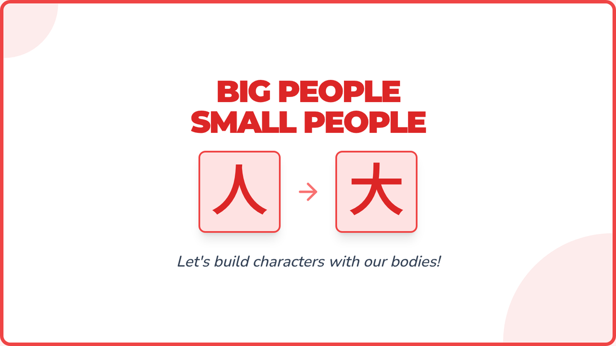 A Kindergarten intro to Mandarin Chinese focusing on radicals as building blocks for family-related characters. Students learn to recognize 'Person', 'Mouth', and 'Female' components through movement, observation, and hands-on puzzles.
