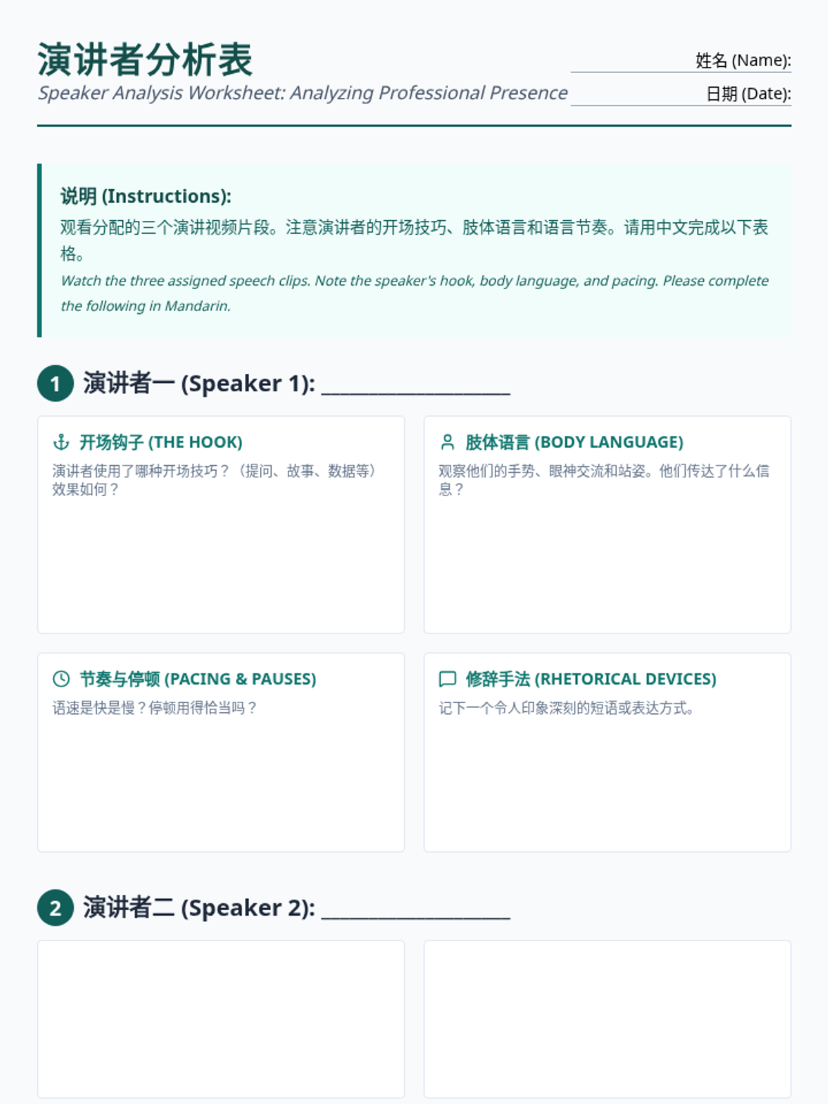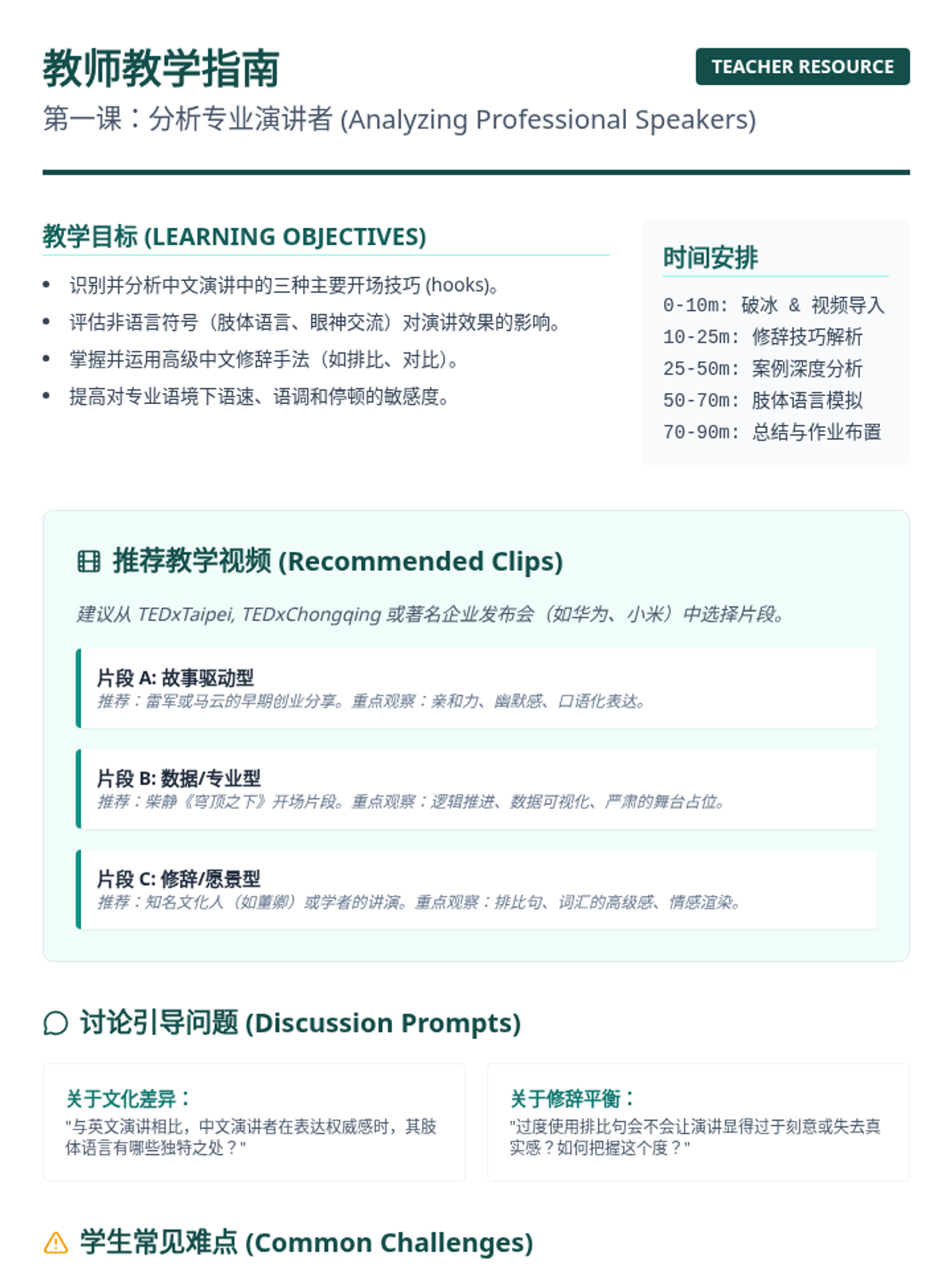 A comprehensive sequence for advanced Mandarin students to master professional presentation skills, from rhetorical analysis to handling live Q&A sessions.
