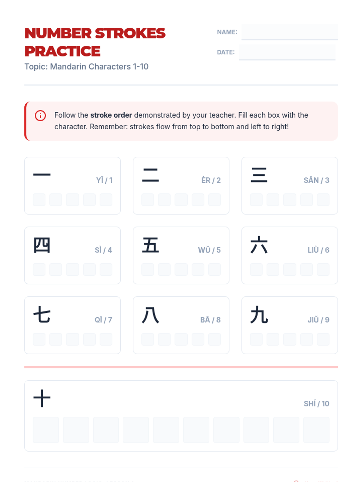 A comprehensive introduction to Mandarin Chinese writing for 3rd graders, focusing on the eight fundamental strokes, essential stroke order rules, and writing numbers 1-10 with proper form and balance.