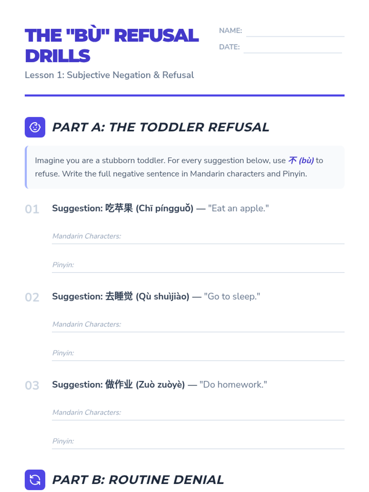 A comprehensive 10th-grade Mandarin Chinese grammar sequence focusing on the nuances of negation. Students master the distinct uses of 'bù' and 'méi' through case studies, creative writing, and linguistic analysis.