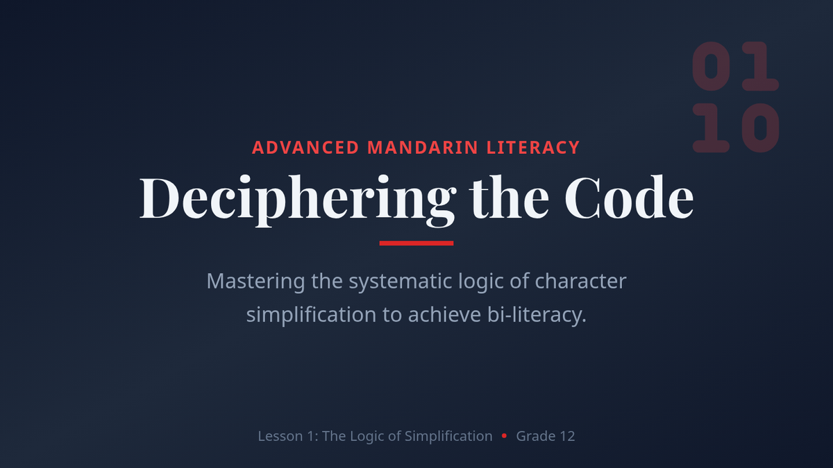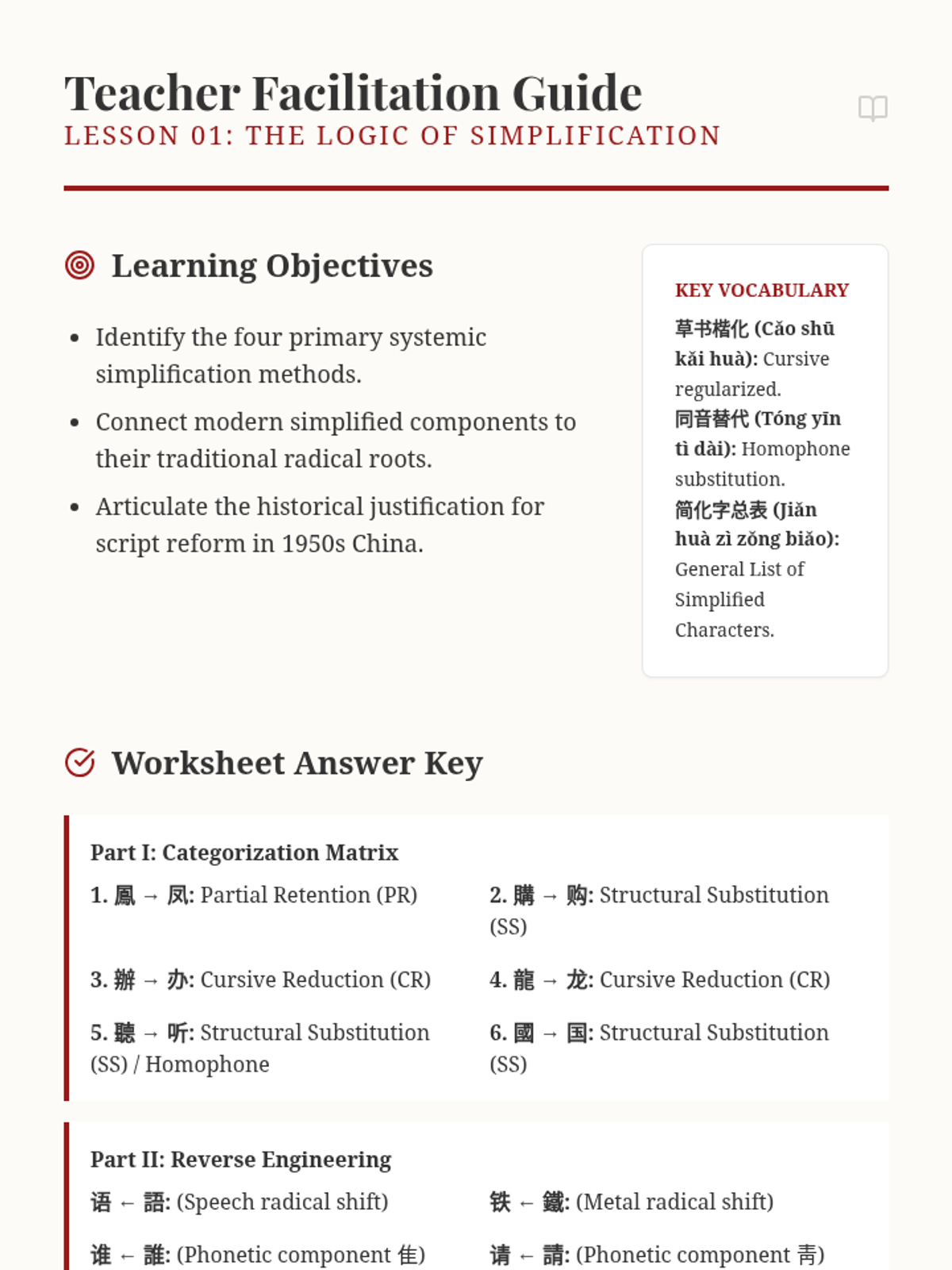 A comprehensive 12th Grade Mandarin Chinese unit exploring the linguistic logic, cultural history, and practical application of Simplified and Traditional character systems to develop global Sinophone literacy.