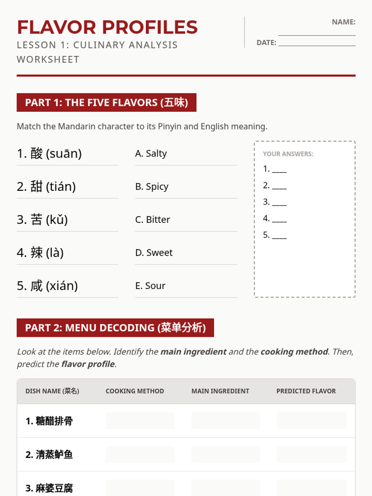 This sequence immerses students in the cultural and linguistic complexities of dining in Mandarin-speaking regions. Students move beyond basic food vocabulary to master the nuances of ordering for a group, expressing specific dietary preferences, and navigating the social etiquette of seating arrangements and bill payment.