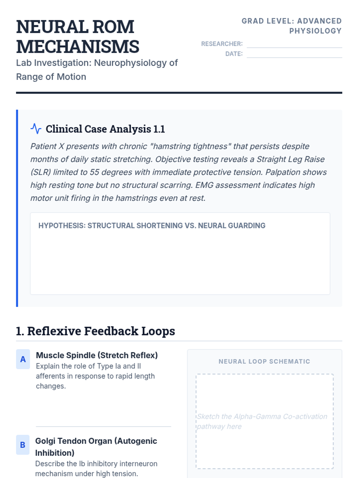 An advanced graduate-level sequence exploring the neurophysiological mechanisms, biomechanical principles, and evidence-based programming for flexibility and mobility in elite and clinical populations.