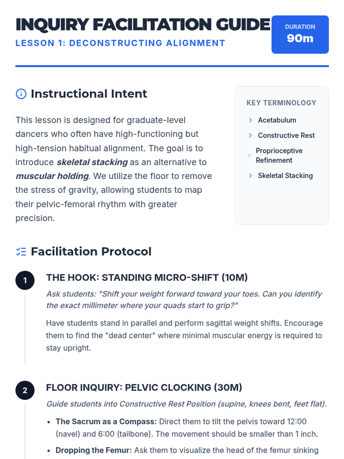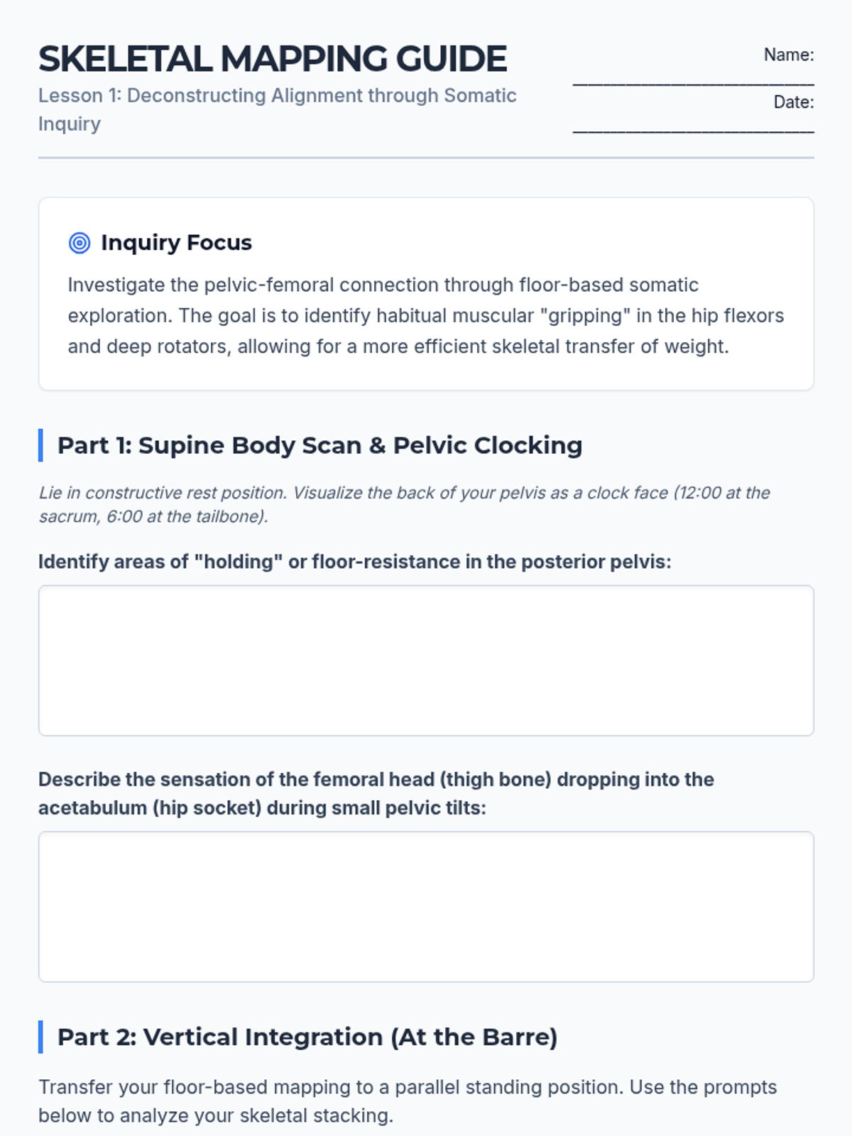 A graduate-level intensive focusing on the intersection of somatic awareness and biomechanical efficiency in advanced dance technique. Students deconstruct habitual patterns and apply anatomical theory to optimize performance longevity and artistic clarity across multiple dance forms.