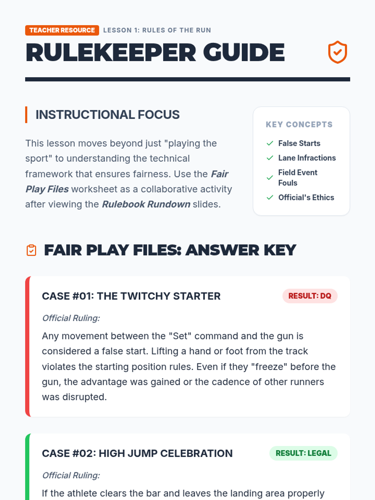 A comprehensive unit for 6th-grade PE focusing on the rules, officiating, and strategy of Track and Field. Students transition from athletes to officials, concluding with a student-led mini-meet.