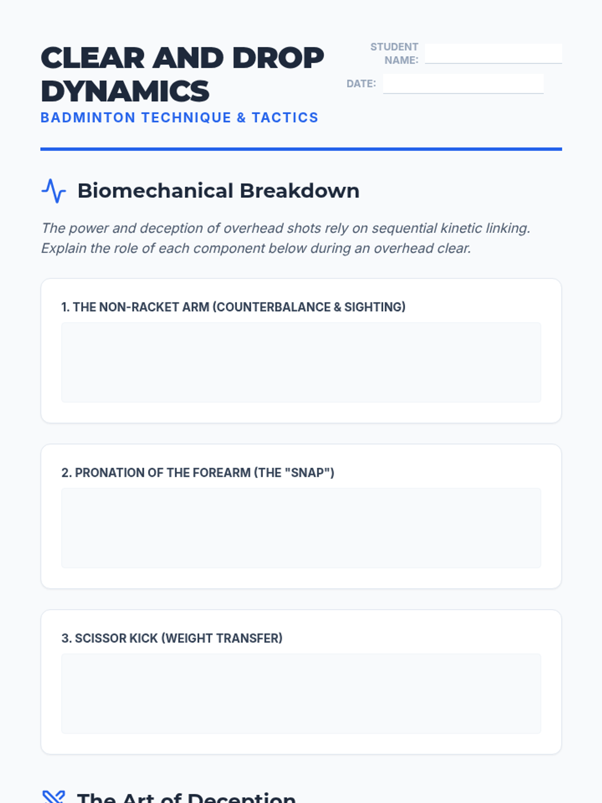 A 12th Grade Physical Education unit focusing on the mental and strategic components of racket sports. Students move beyond basic mechanics to master court geometry, doubles coordination, opponent analysis, and tournament officiating.
