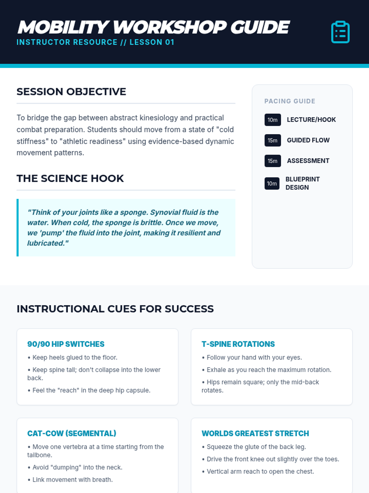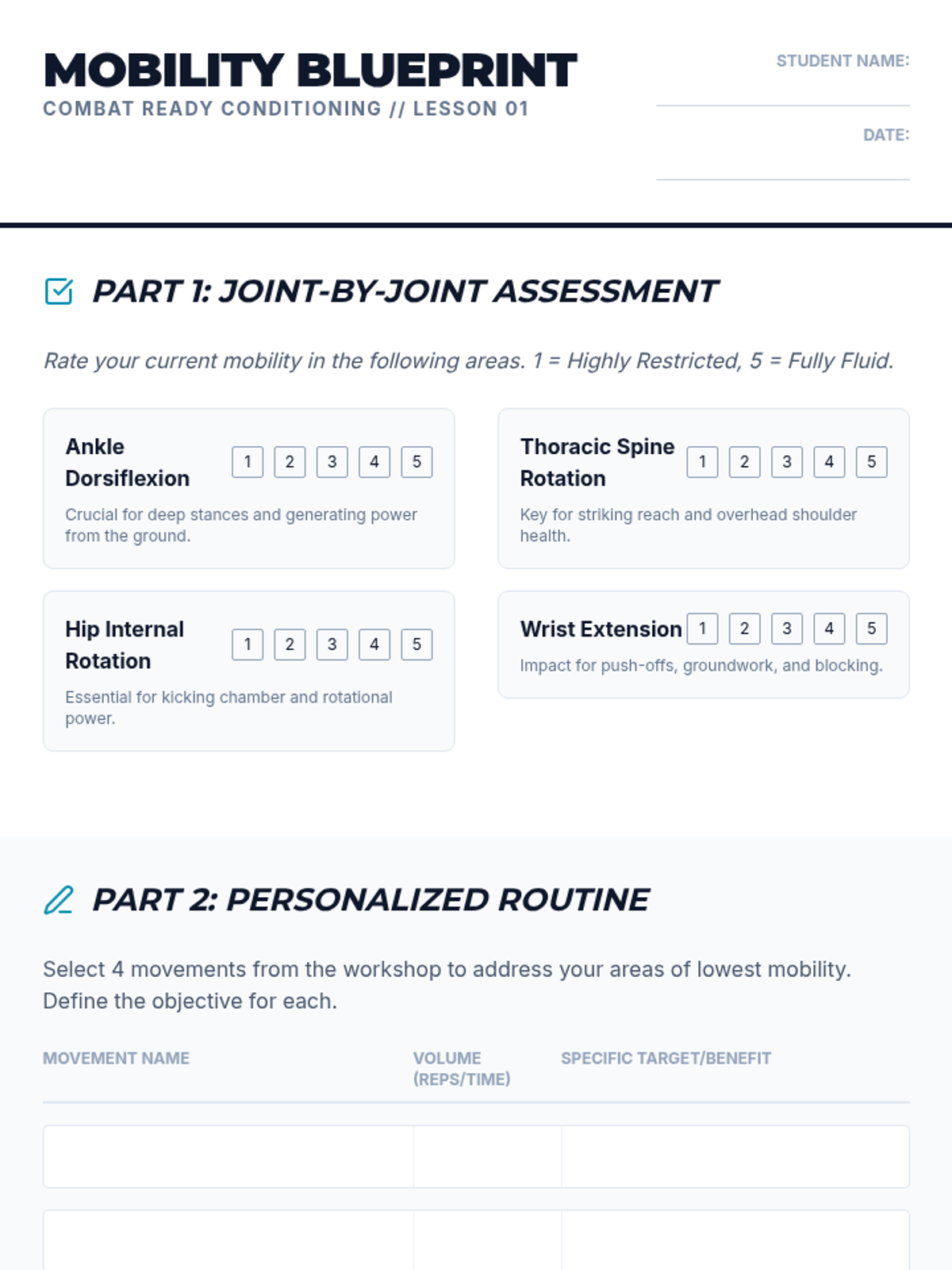 A comprehensive physical conditioning unit for martial arts, applying kinesiology principles to improve performance, power, and longevity in combat sports.