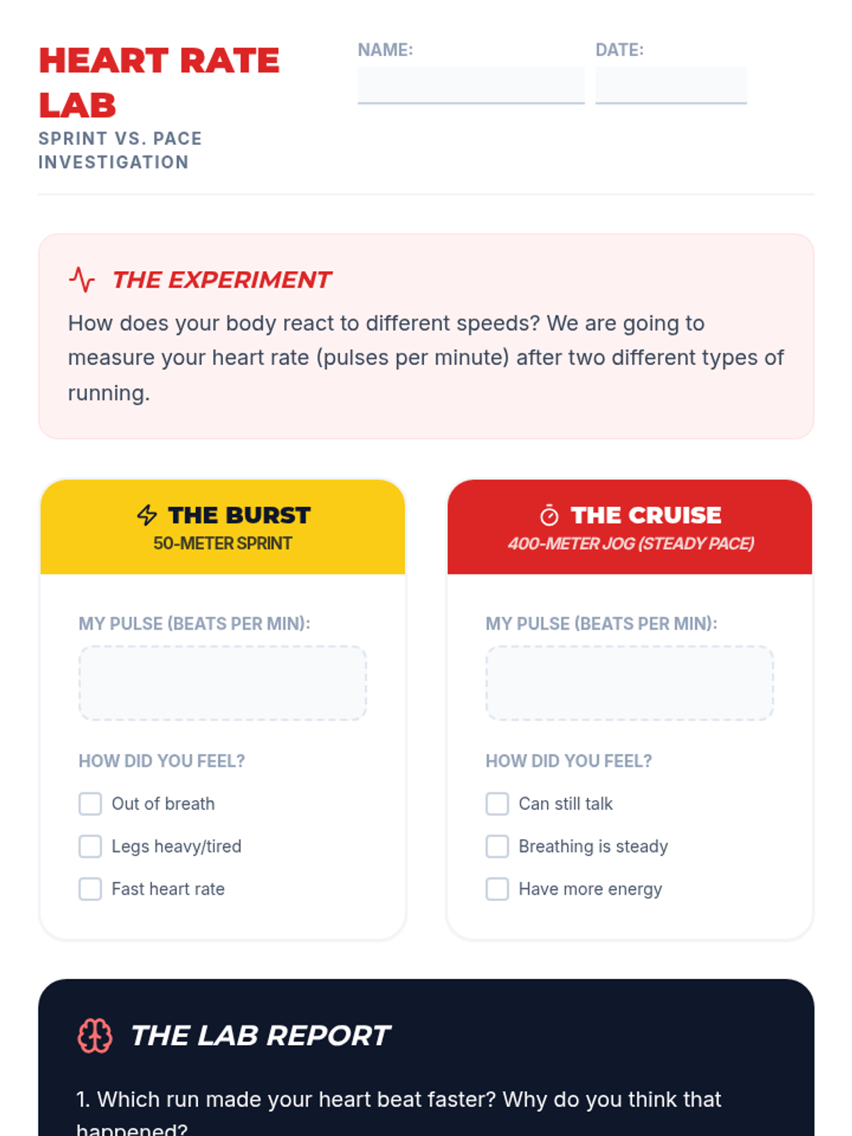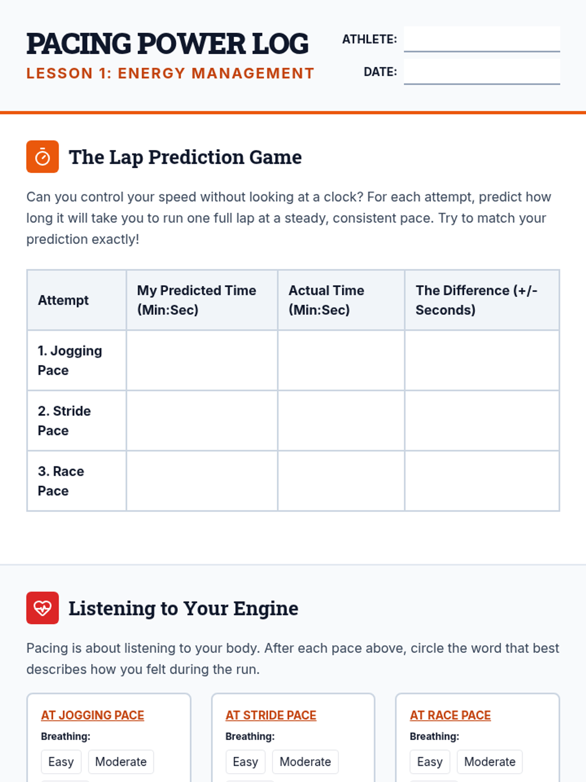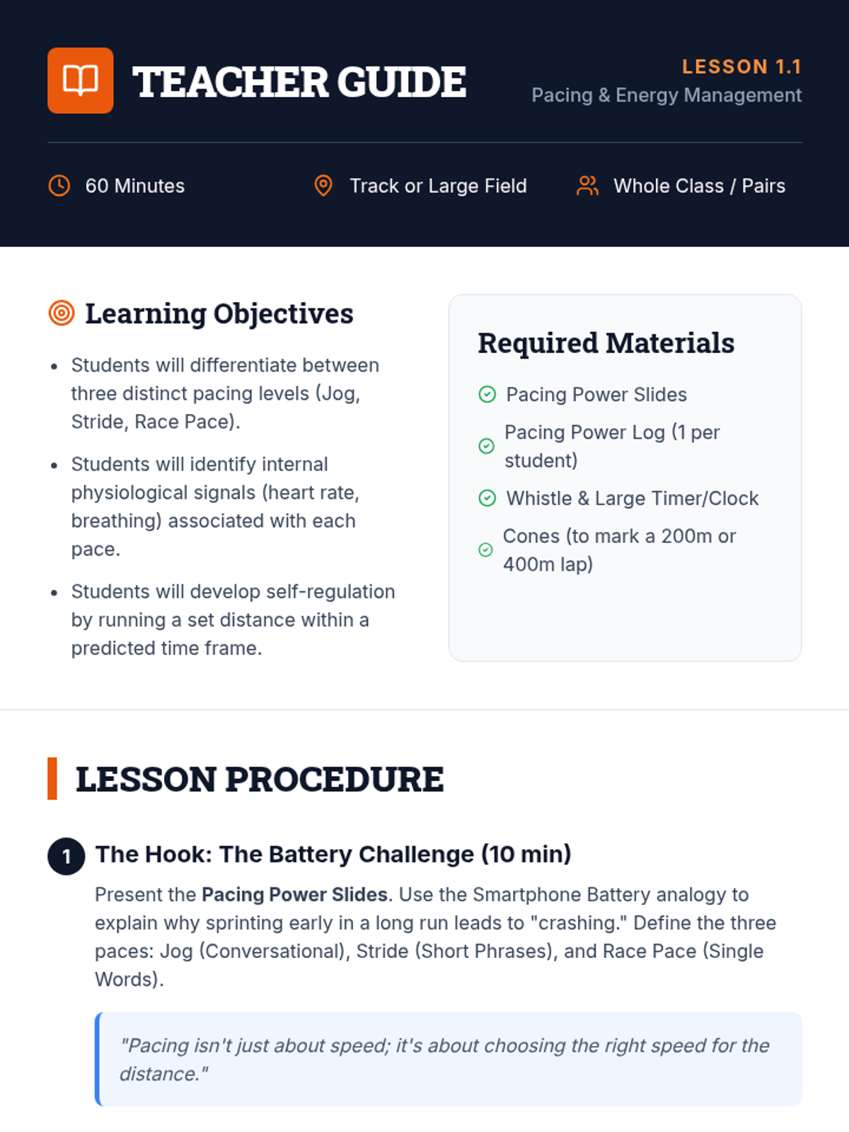 A 5-lesson unit for 4th graders focusing on the difference between anaerobic sprinting and aerobic endurance. Students learn to regulate energy through pacing, rhythm, and interval training, culminating in a goal-setting endurance run.