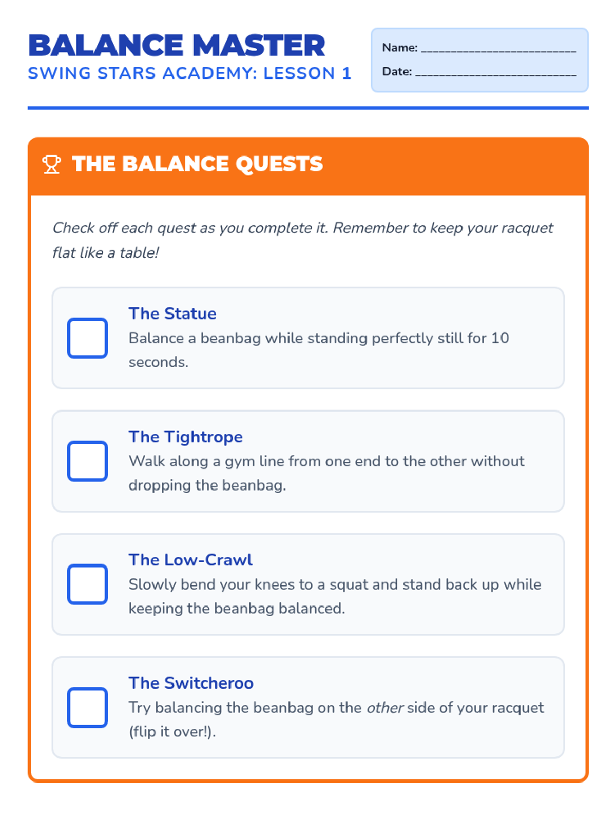 This physical education sequence for 3rd graders focuses on the foundational motor skills of racket sports, including grip, balance, tracking, and stroke mechanics. Students progress from balloon play to controlled hitting, culminating in a directional accuracy challenge.
