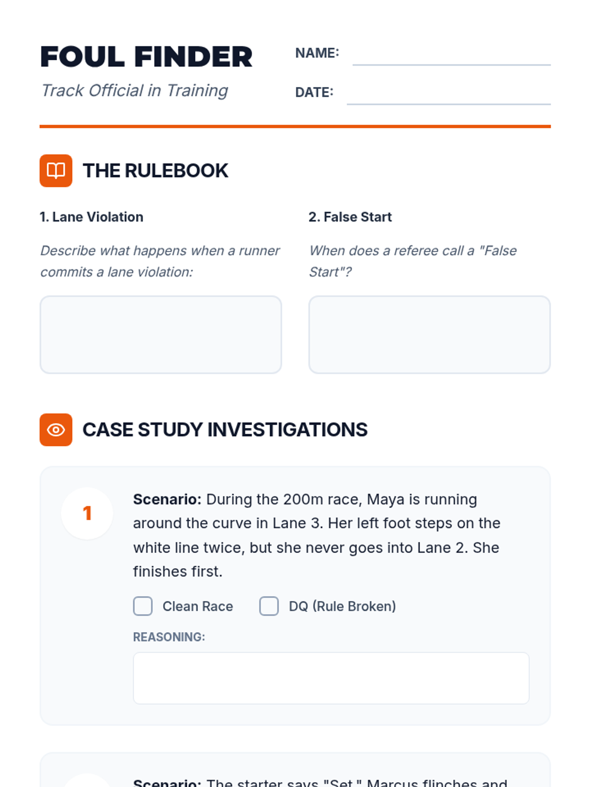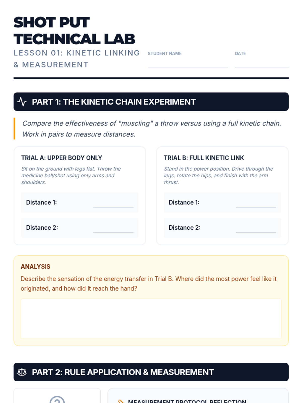 This sequence shifts focus from pure mechanics to the organizational structure, rules, and etiquette of a track meet. Students take on roles as both athletes and officials, learning how events are measured, judged, and scored. The unit emphasizes fair play, understanding disqualifications, and accurate measurement, culminating in a class-organized mini-meet.