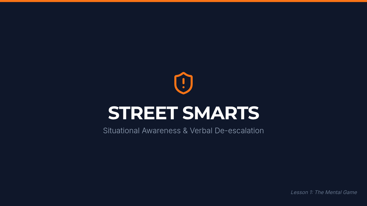 A comprehensive self-defense sequence for high school students focusing on situational awareness, verbal de-escalation, and fundamental stand-up defensive tactics centered on the 'Stun and Run' philosophy.
