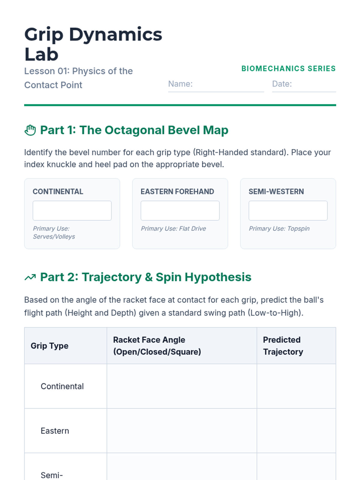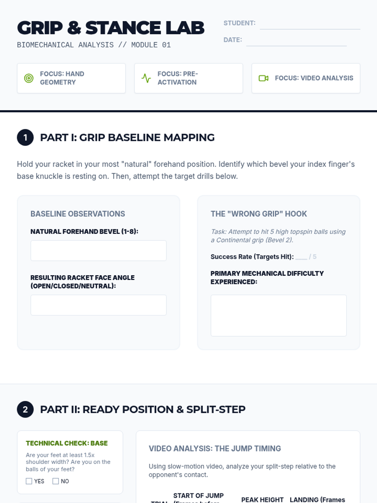 A technical analysis and practical application of biomechanics in racket sports, focusing on tennis and pickleball. Students analyze grip physics, the kinetic chain, net mechanics, service motions, and recovery patterns to optimize performance and prevent injury.