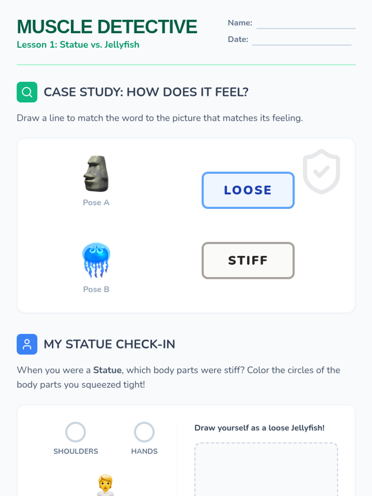 This 2nd Grade sequence teaches Progressive Muscle Relaxation through movement games and animal mimicry. Students explore the concepts of muscle tension and release, developing somatic awareness and self-regulation skills through active play and creative character building.