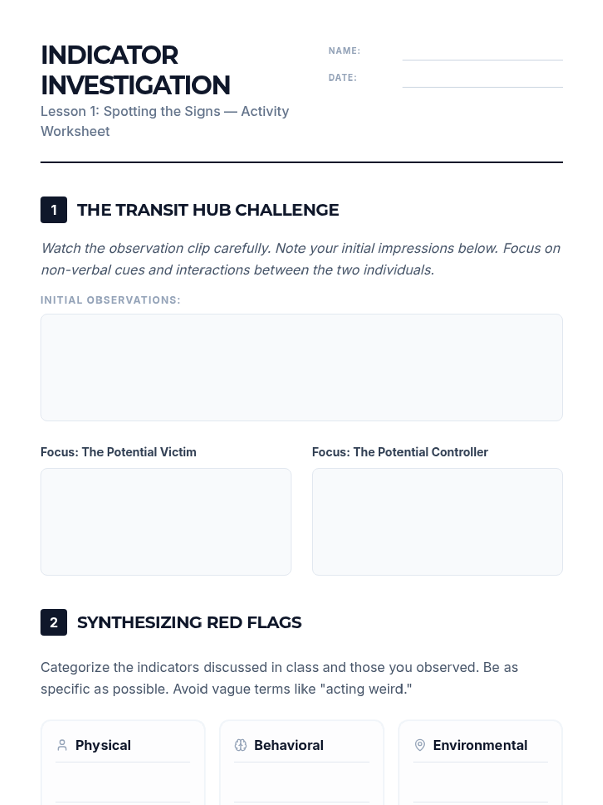 Red Flag Detective Worksheet